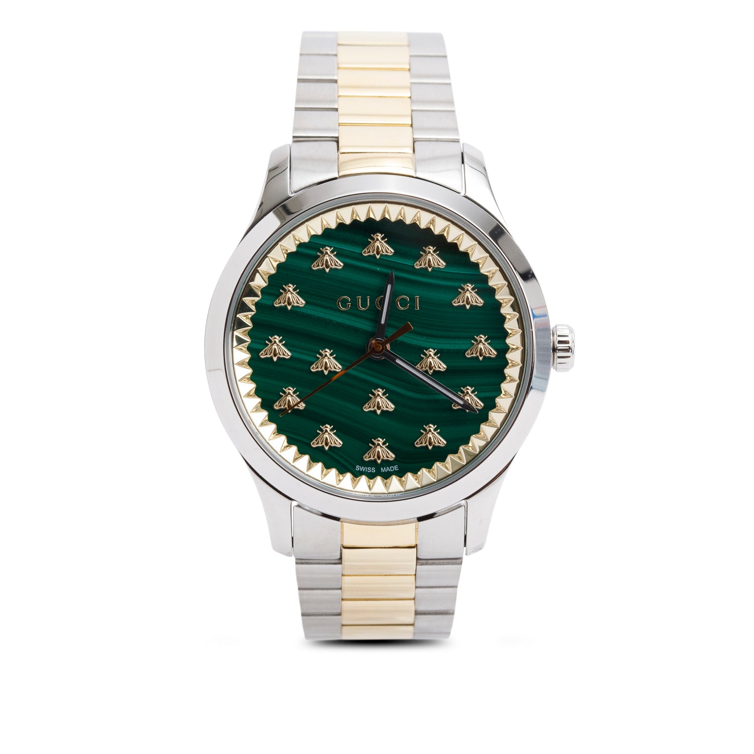 Stainless Steel & 18k Yellow Gold G-Timeless 32 MM Quartz Watch Green Dial YA1265042 w/ Box