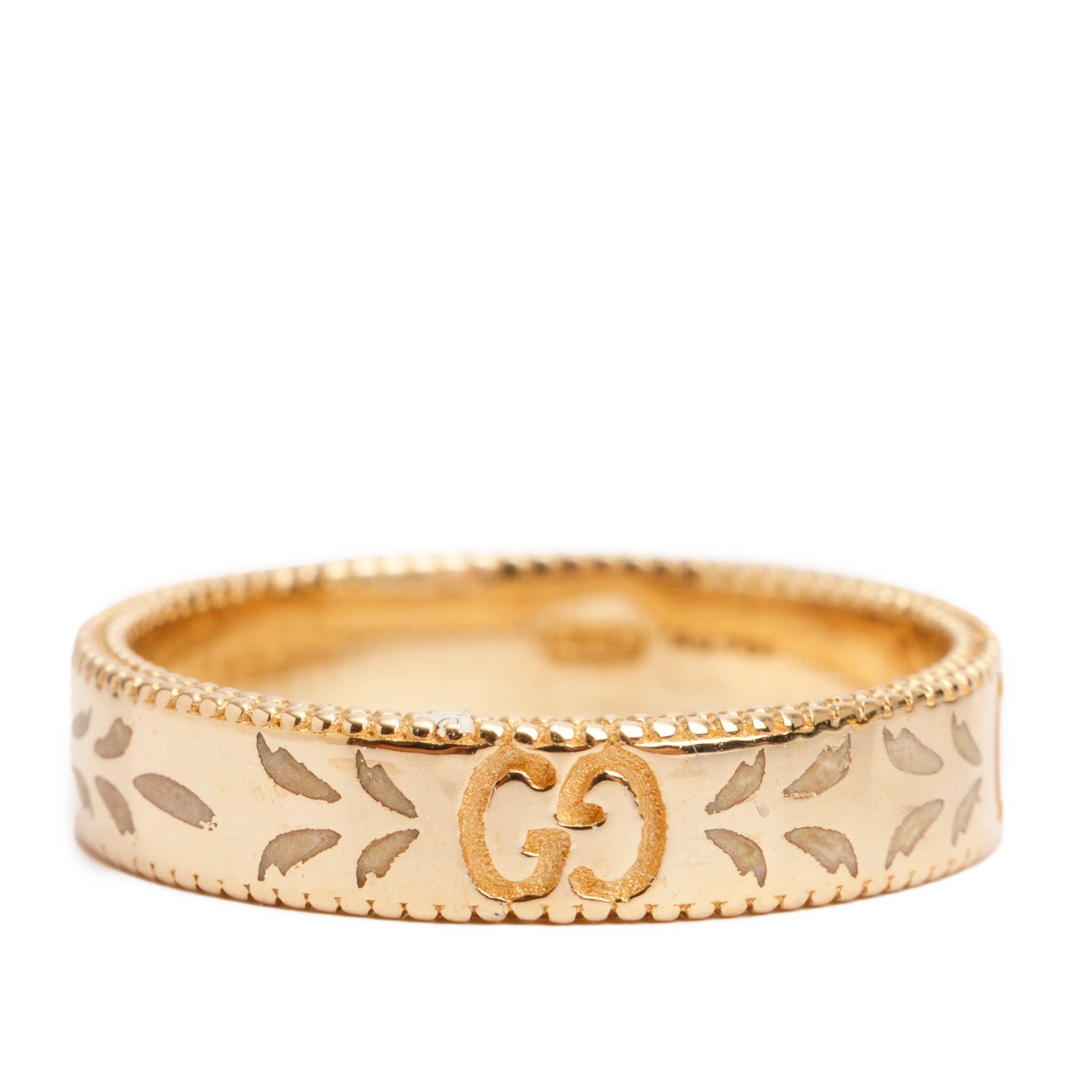 18k Yellow Gold Icon Blossom Enamel 4 MM Band Ring, Size 13 6.25 w/ Box