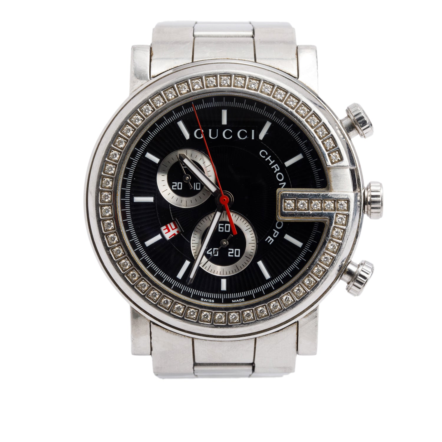 Staineless Steel Diamond Bezel G-Chrono 44MM Watch Black Dial
