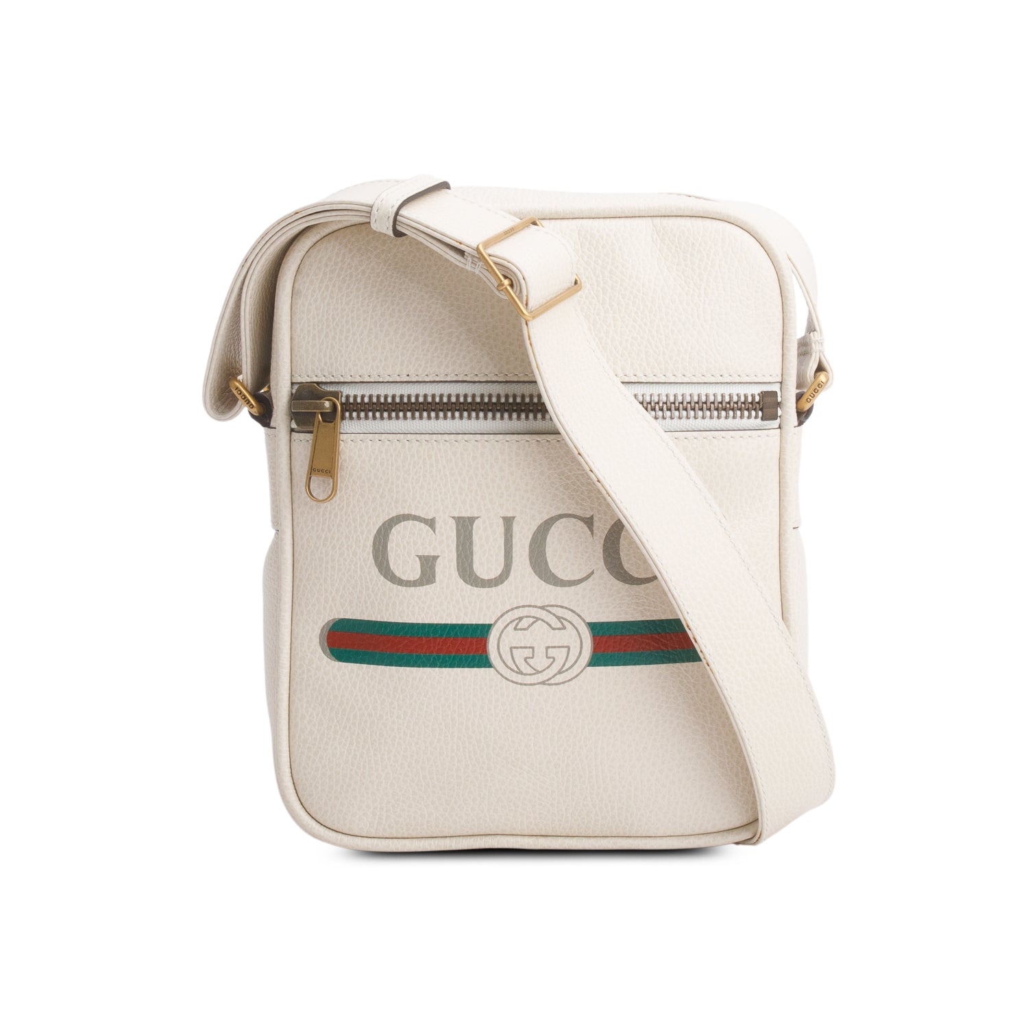 Cream Textured Calfskin Web Medium Ophidia Chain Shoulder Bag