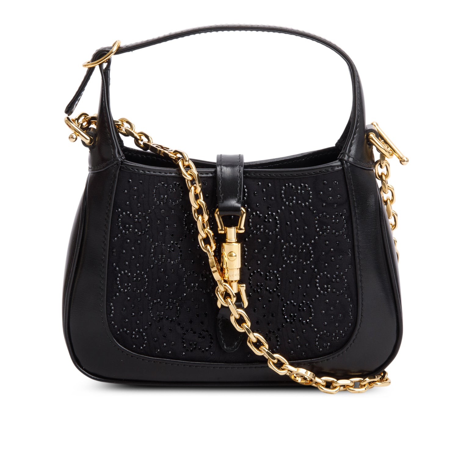 Black New Canvas Charisma Calfskin Crystal GG Monogram Mini Jackie 1961 w/ Box & Strap