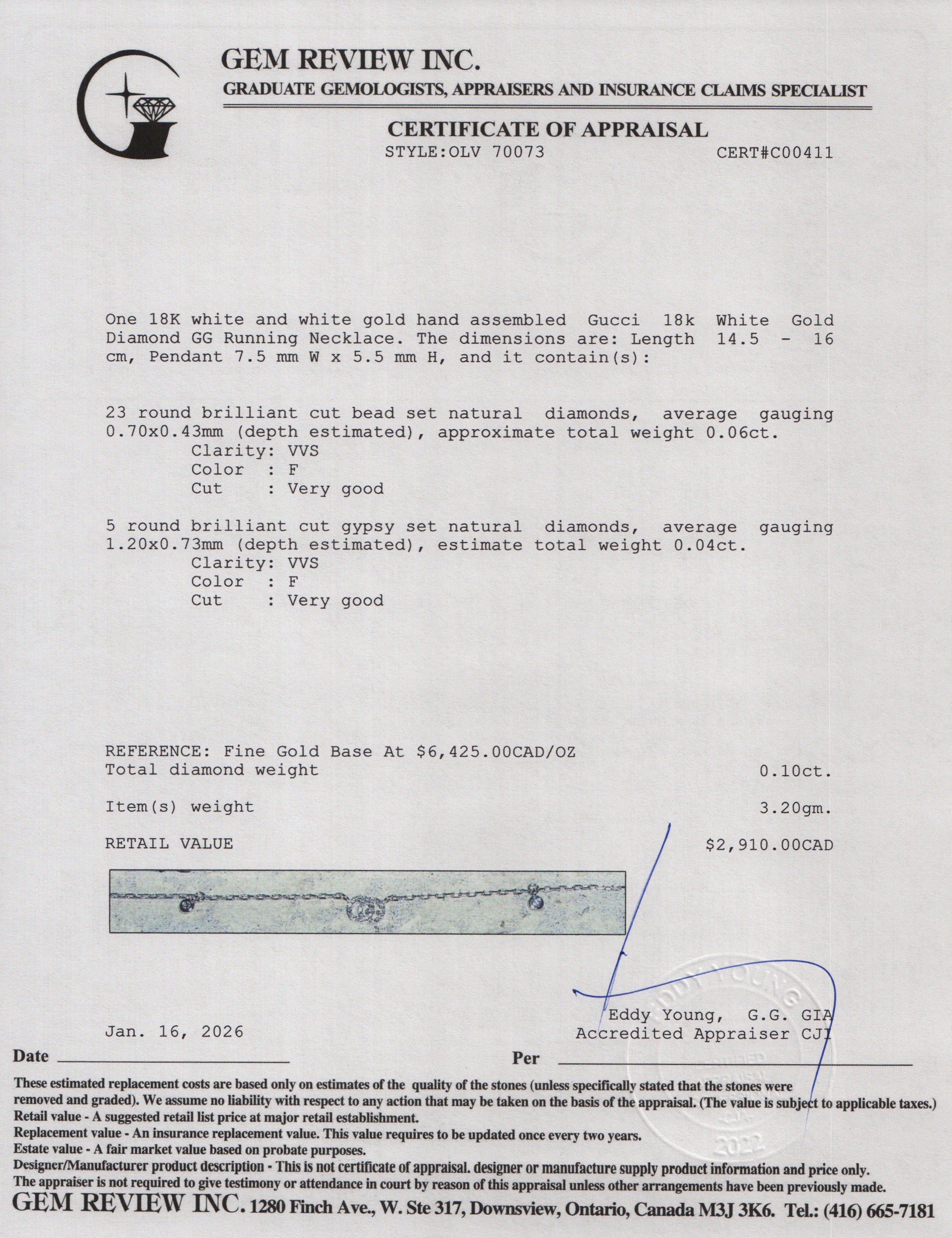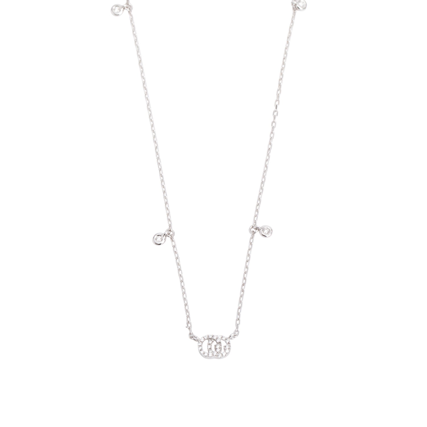 18k White Gold Diamond GG Running Necklace w/ Box