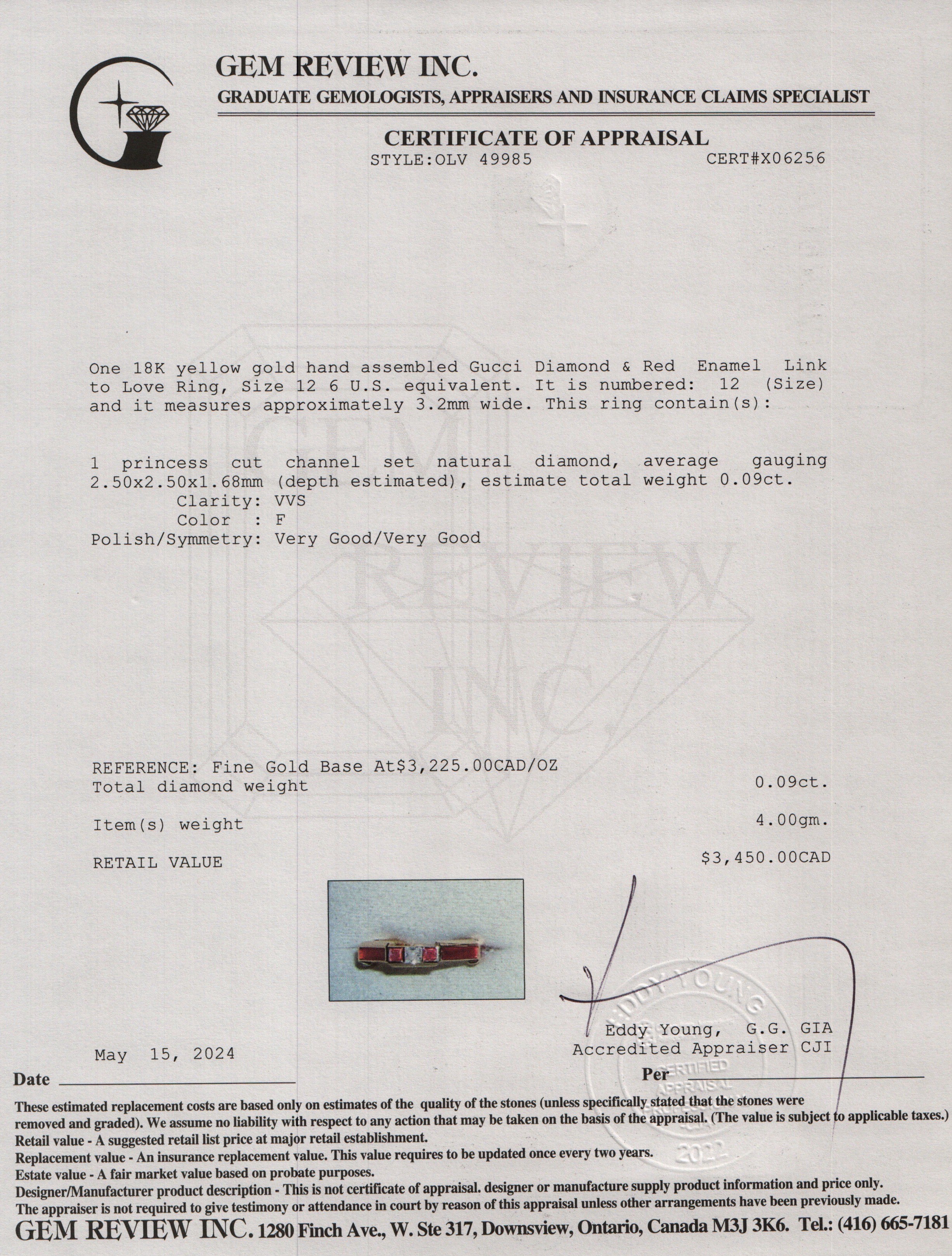 18k Yellow Gold Diamond & Red Enamel Link to Love Ring, Size 12 6