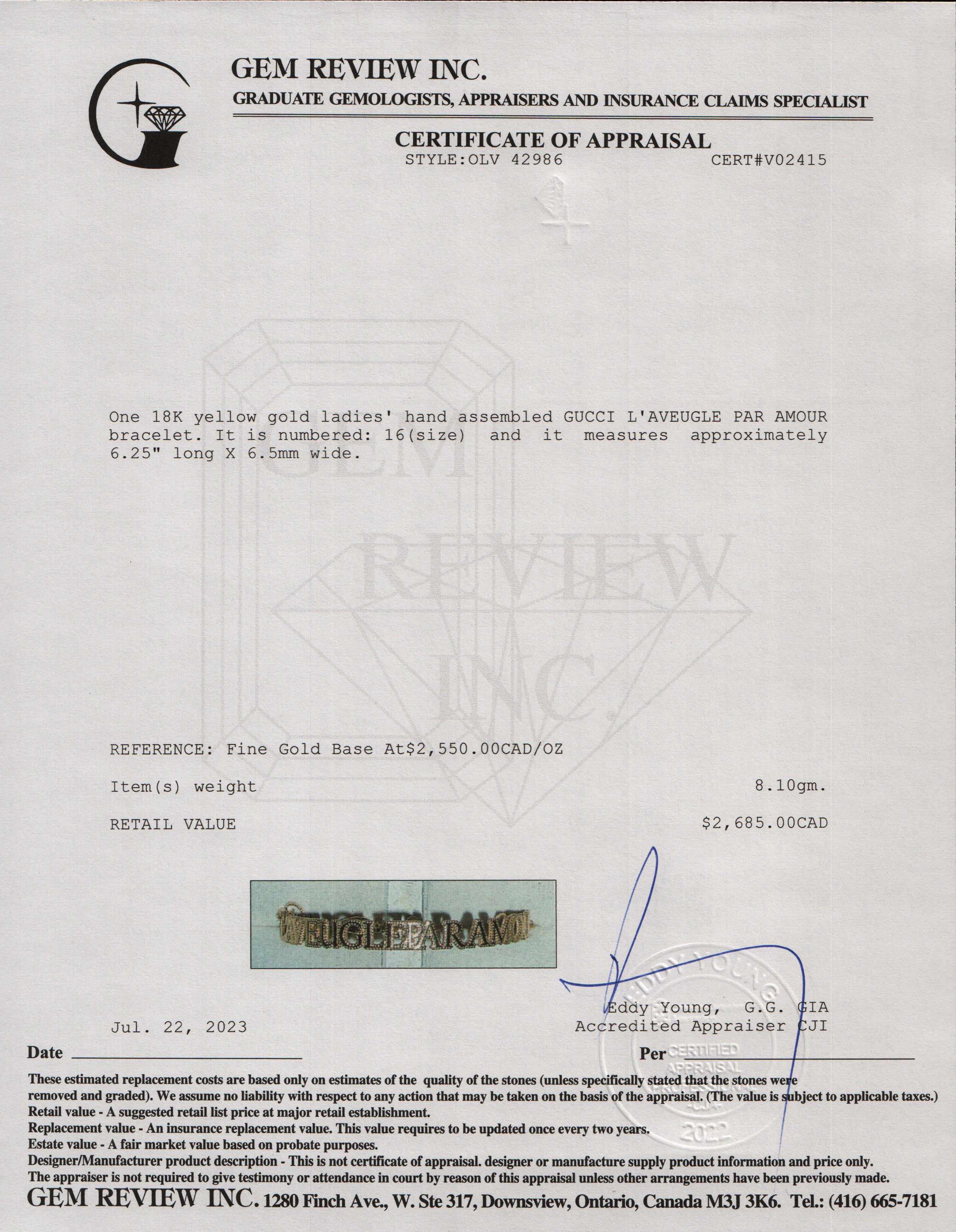 Gucci 18k Yellow Gold L'Aveugle Par Amour Bracelet