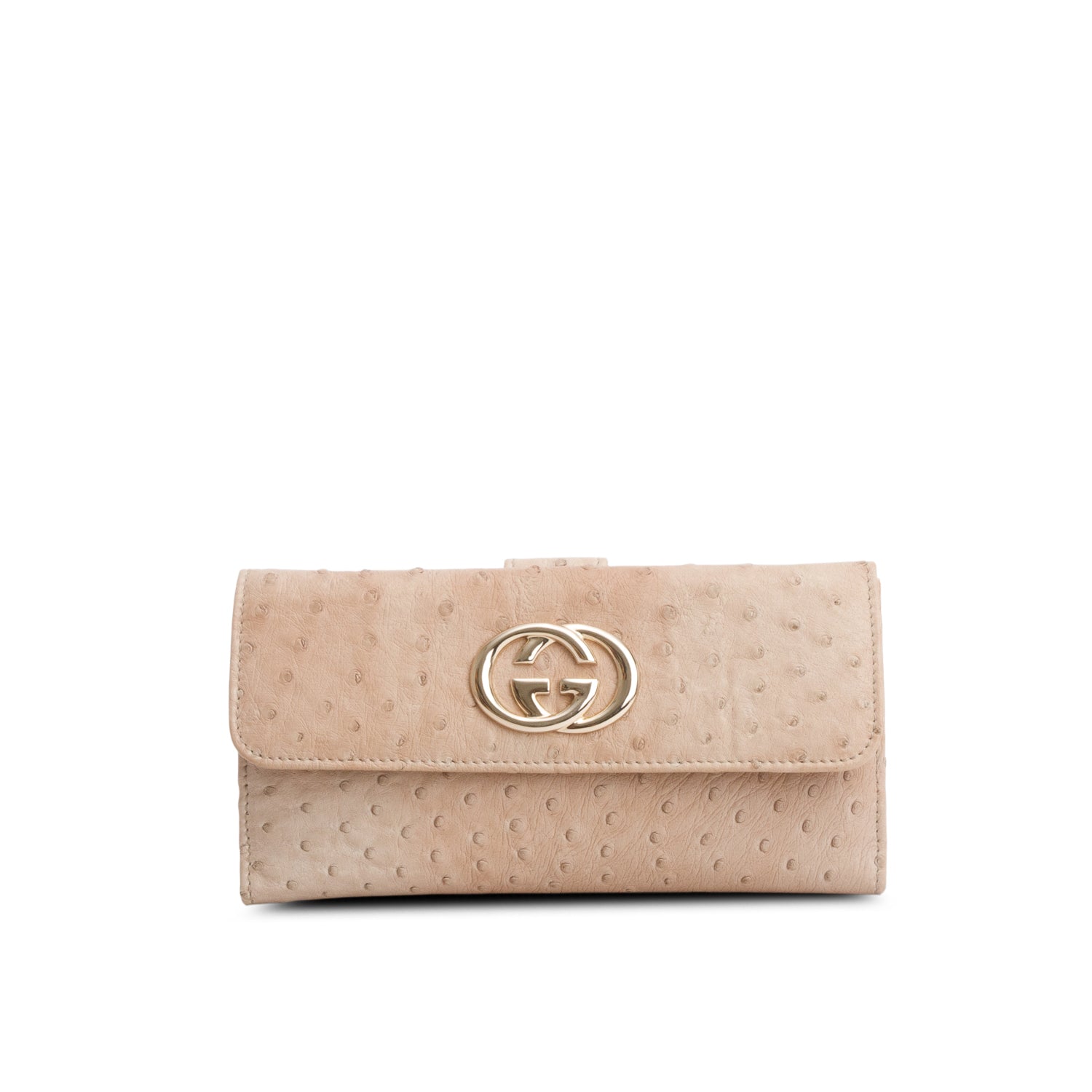 Beige Ostrich Interlocking G Britt Continental Wallet