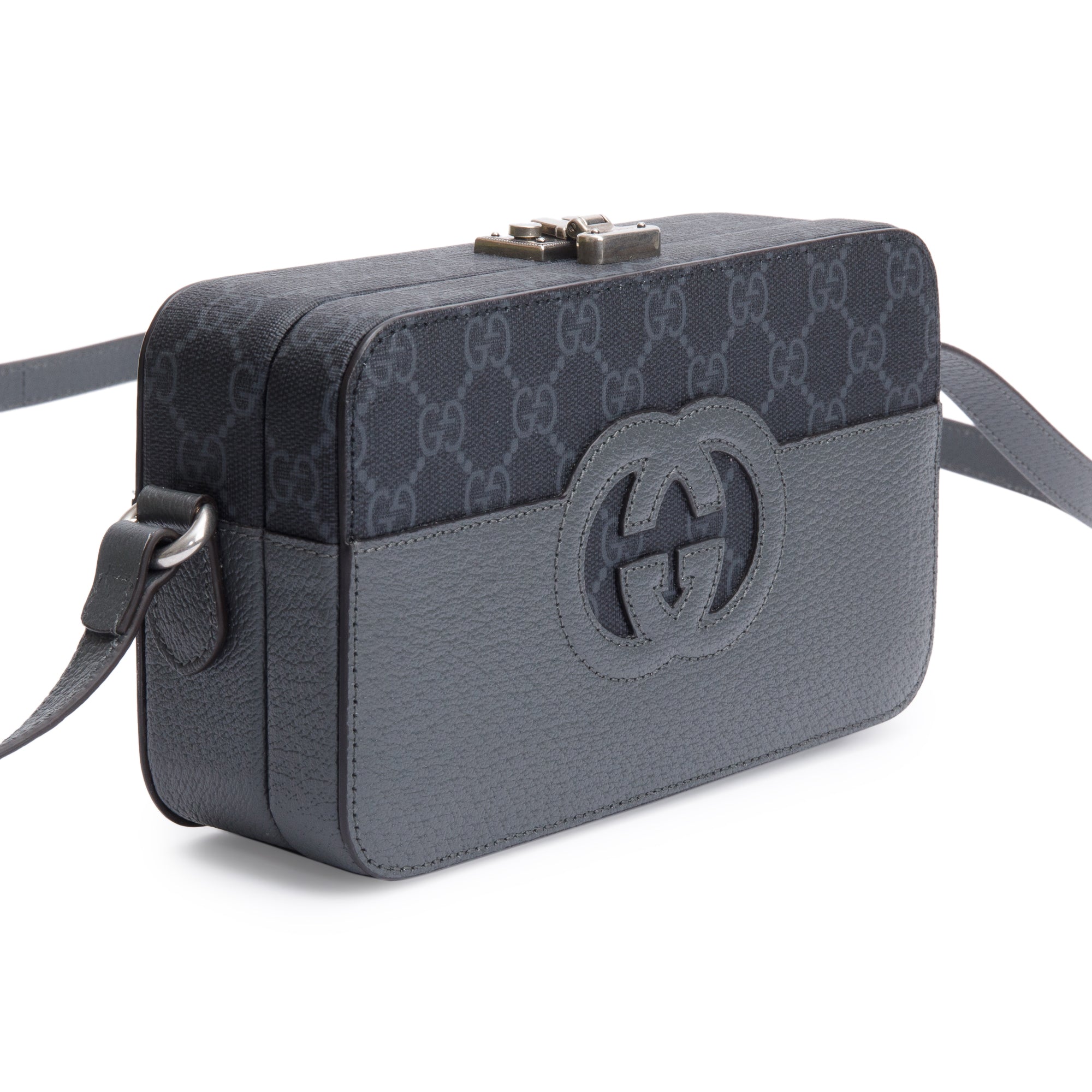 Black GG Supreme Grey Dollar Textured Leather Mini New Basket Crossbody Bag w/ Box