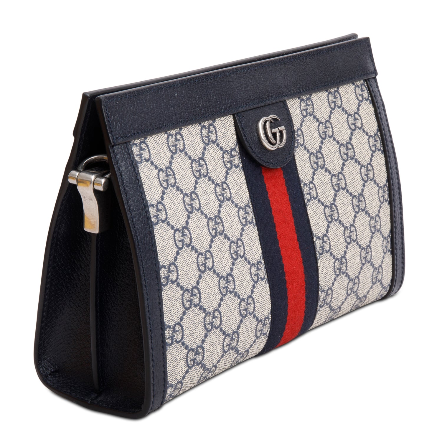 Black GG Supreme Monogram Textured Calfskin Web Medium Ophidia Chain Shoulder Bag w/ Box