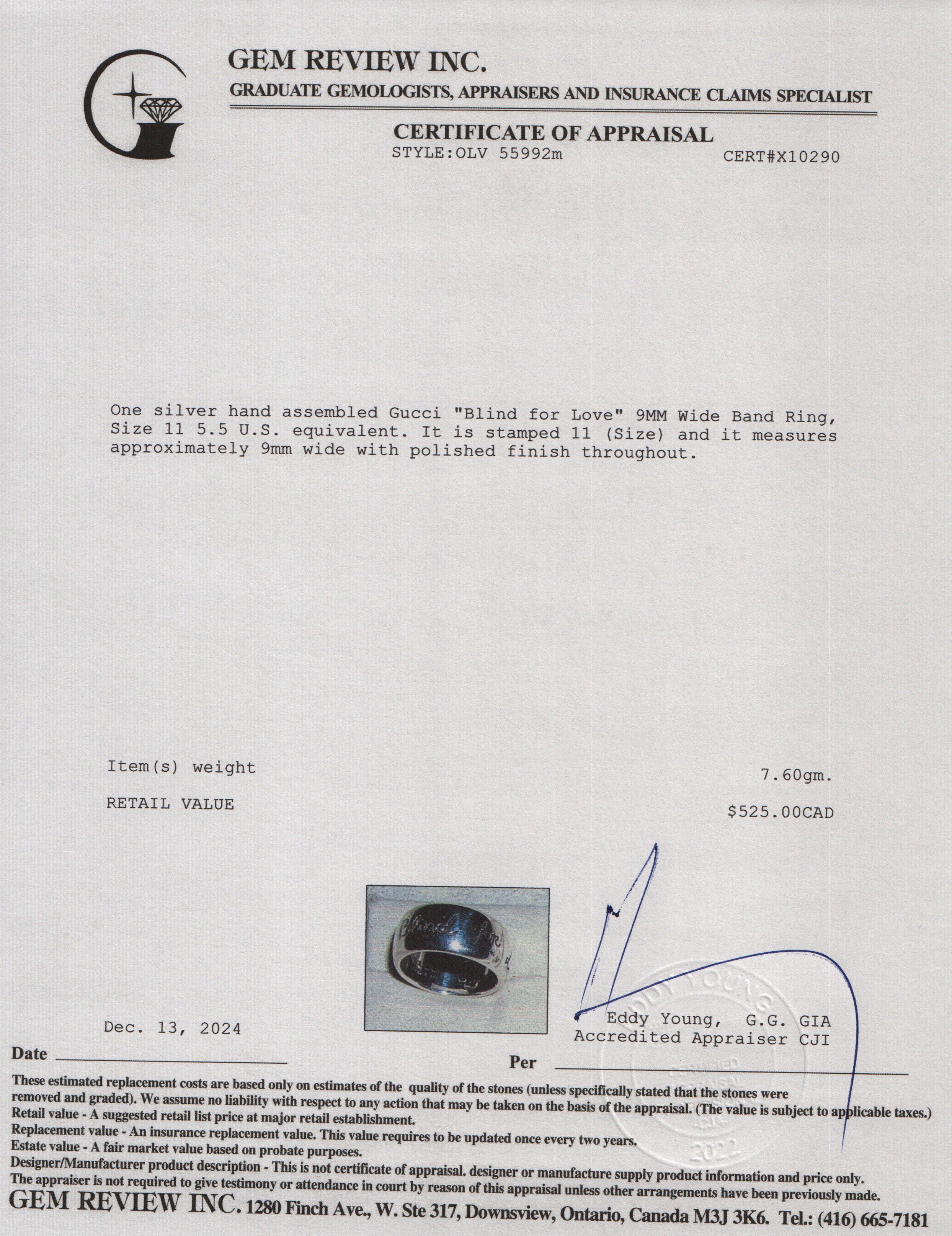 "Blind for Love" 9MM Wide Band Ring, Size 11 5.5