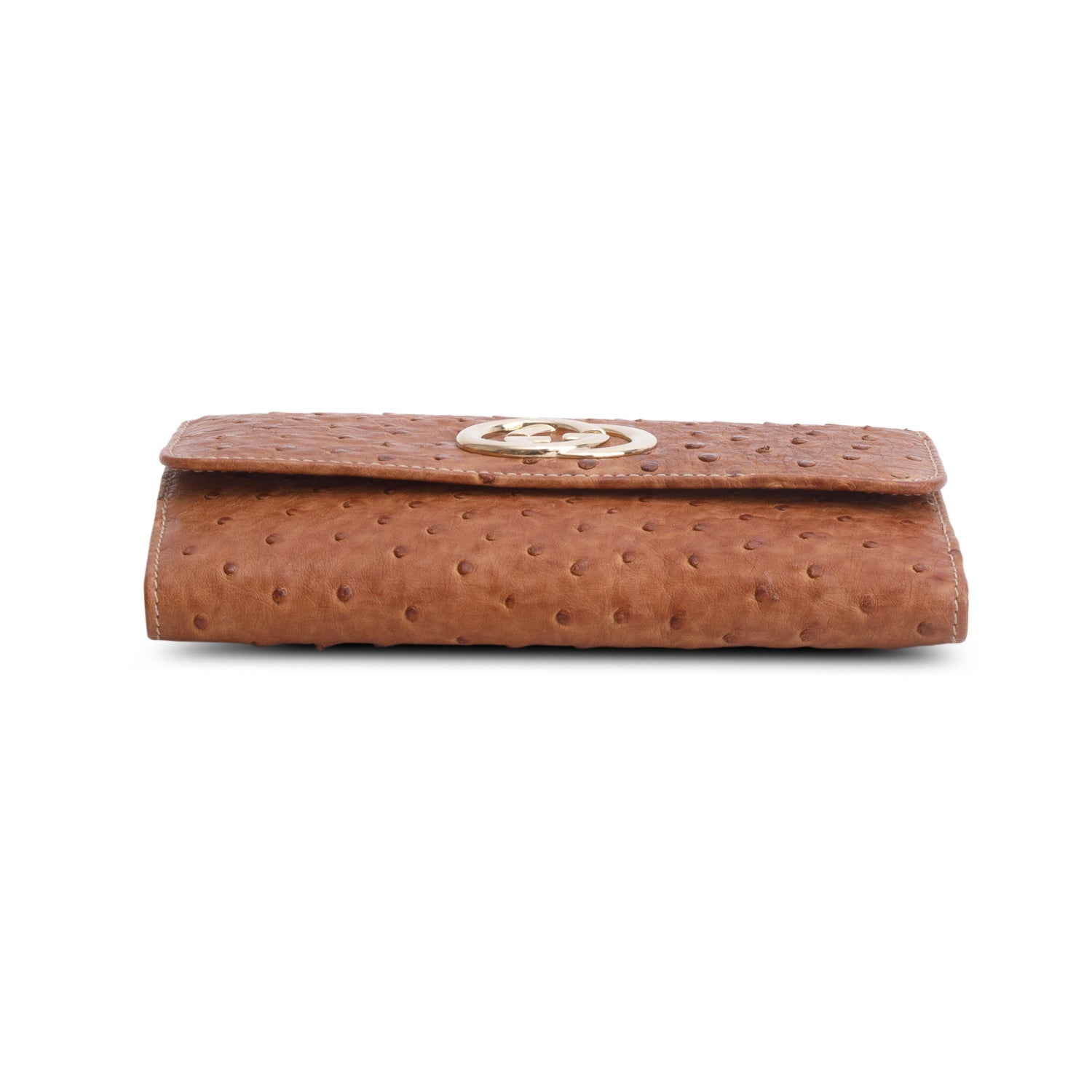 Brown Ostrich Interlocking G Britt Continental Wallet w/ Box
