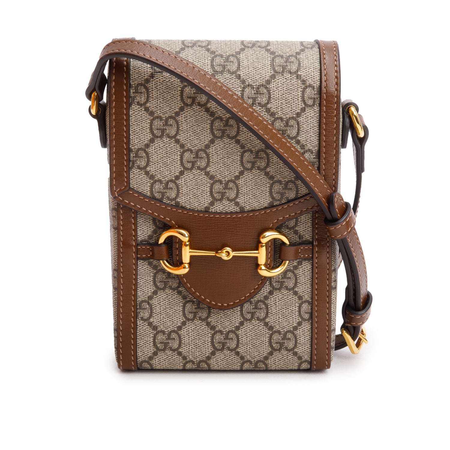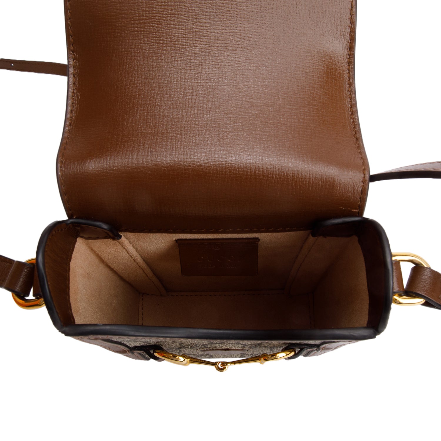 GG Supreme Brown Leather Trim Mini Horsebit 1955 Crossbody Bag w/ Box