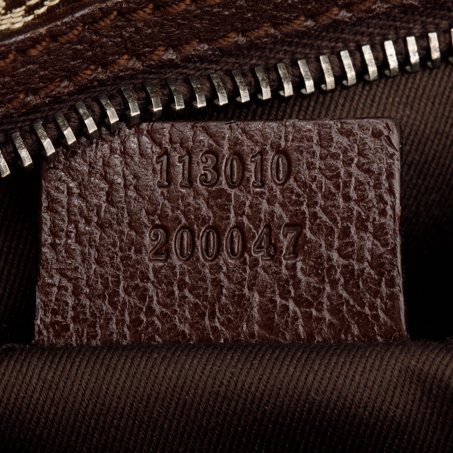 Condition: Very Good; minor scuffing at exterior corners and leather base; slight creasing and wear at leather handles; minor marks at interior.
