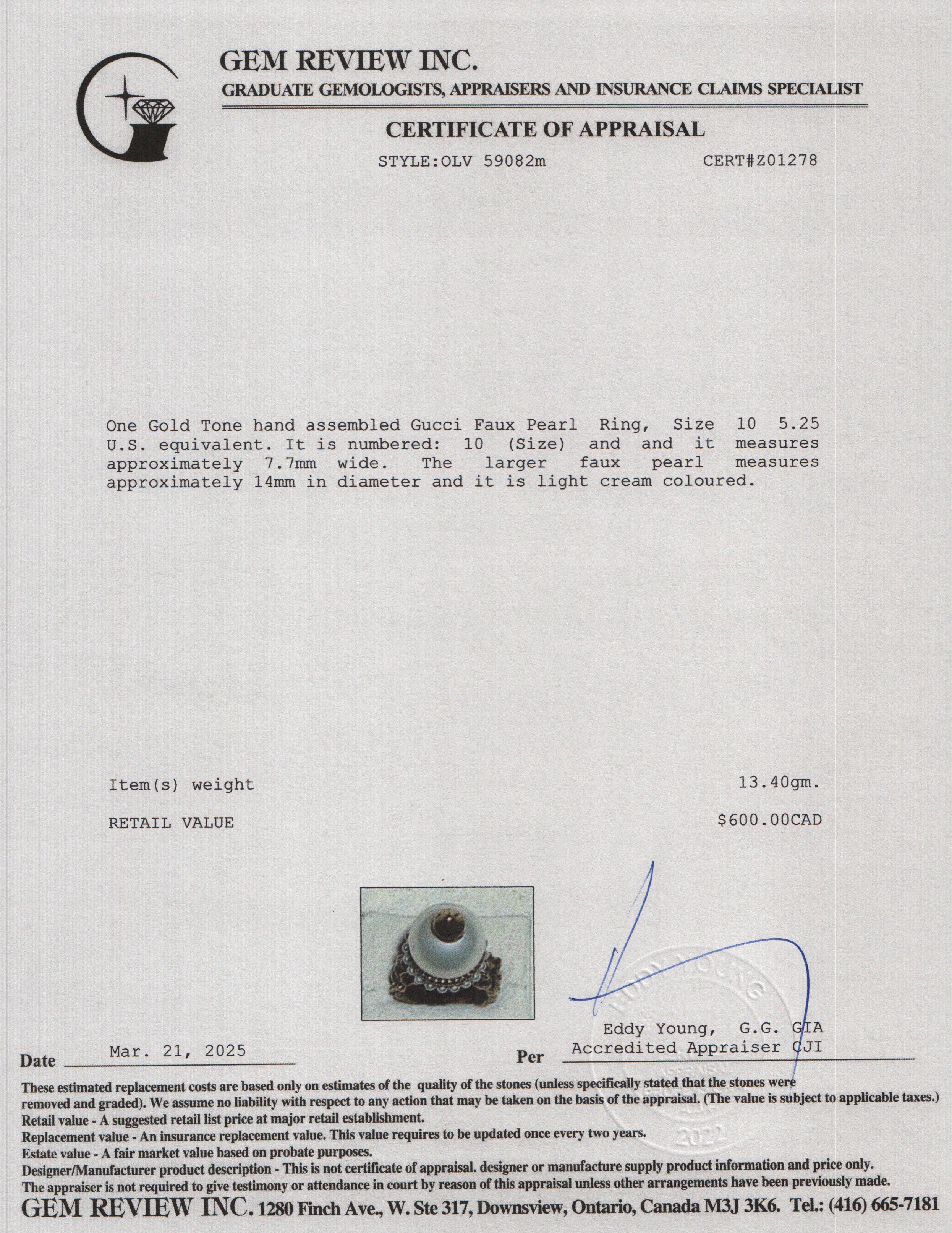 Gold Tone Metal Faux Pearl Ring, Size 13 6.5