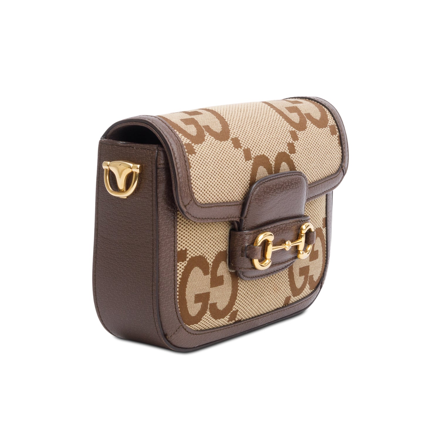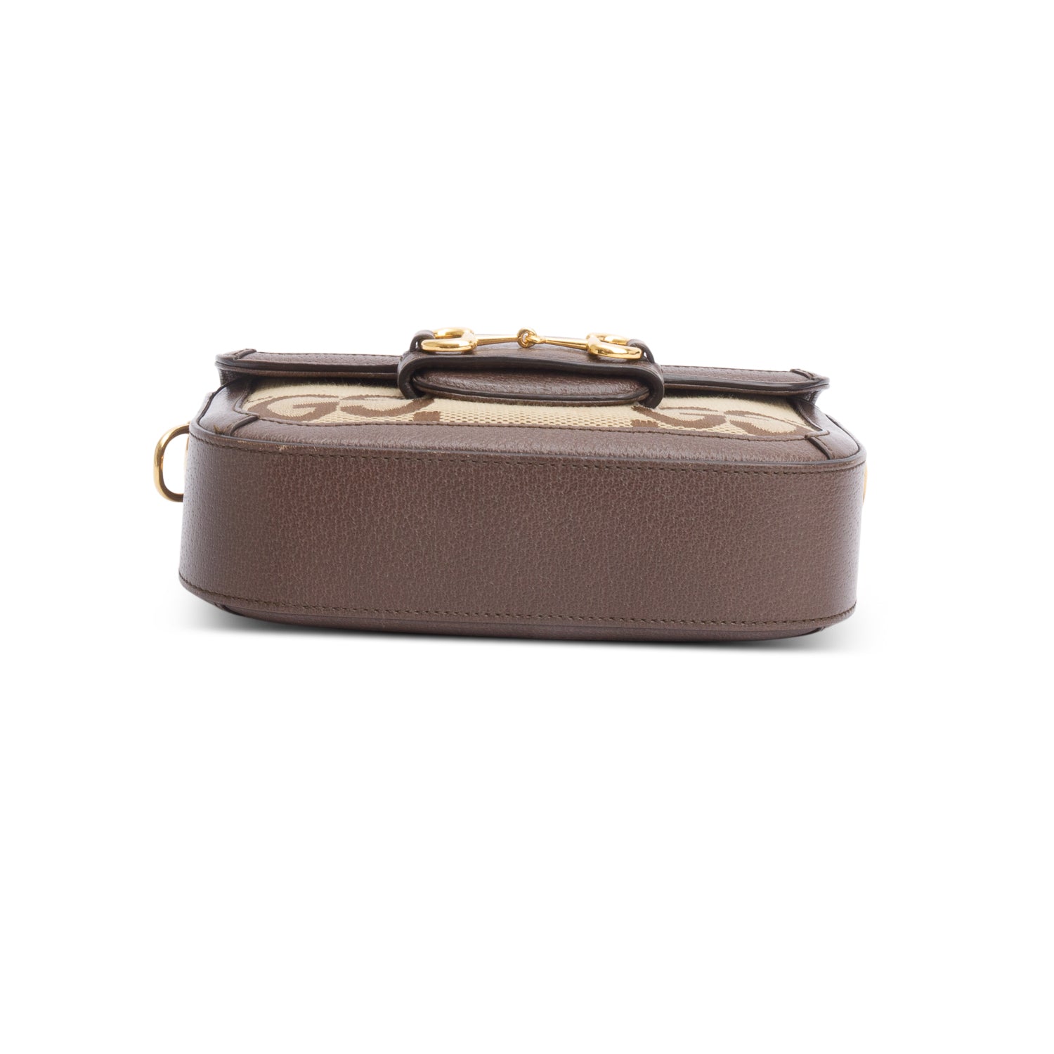 Jumbo GG Canvas Brown Leather Trim Horsebit 1955 Small Shoulder Bag w/ Straps