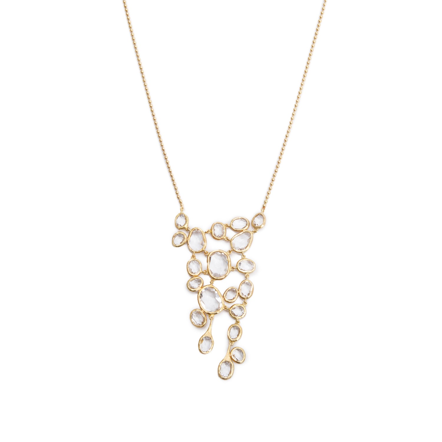 Vintage 18k Yellow Gold Rock Crystal Chandelier Drop Necklace