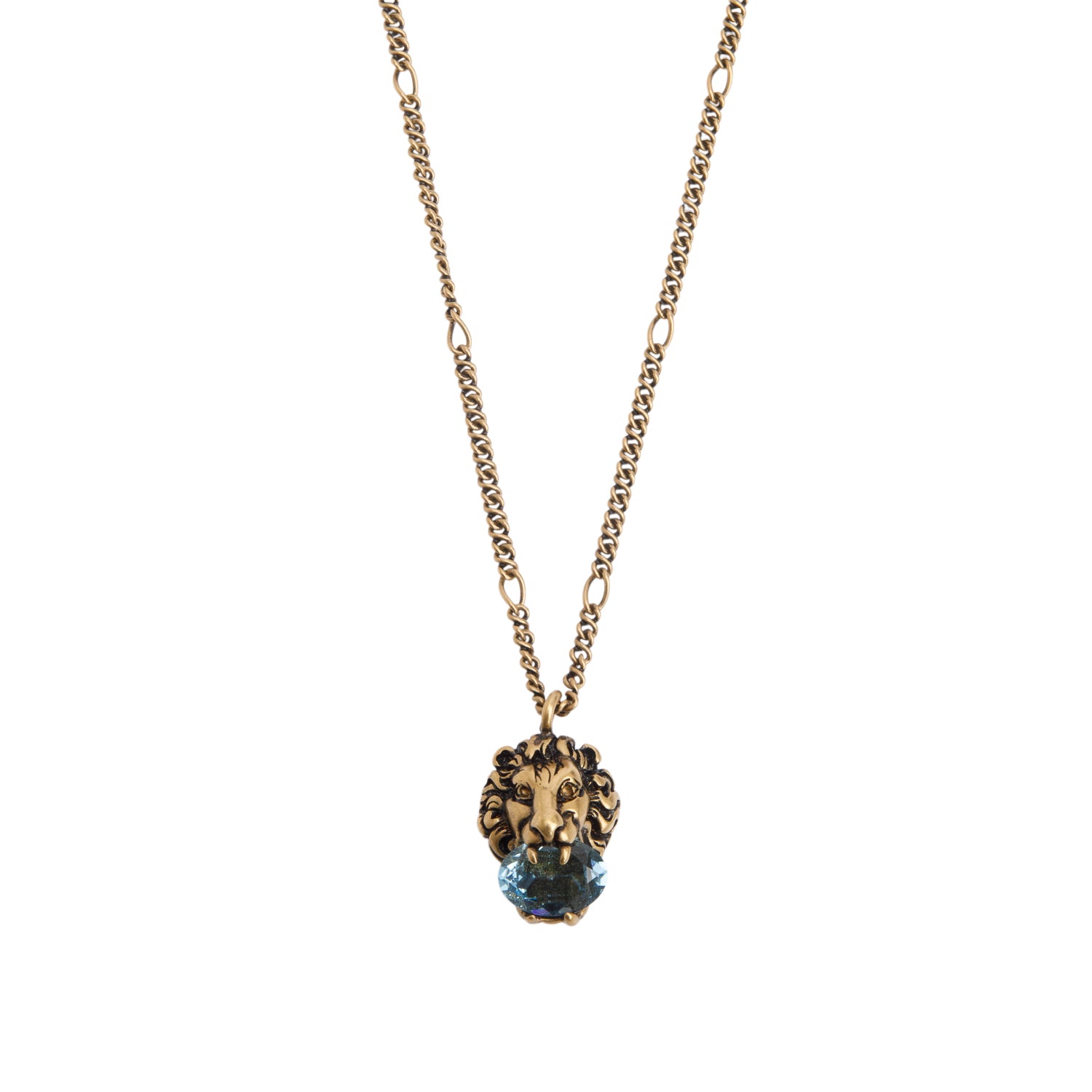Gold-Plated Metal Blue Crystal Lion Head Pendant Necklace