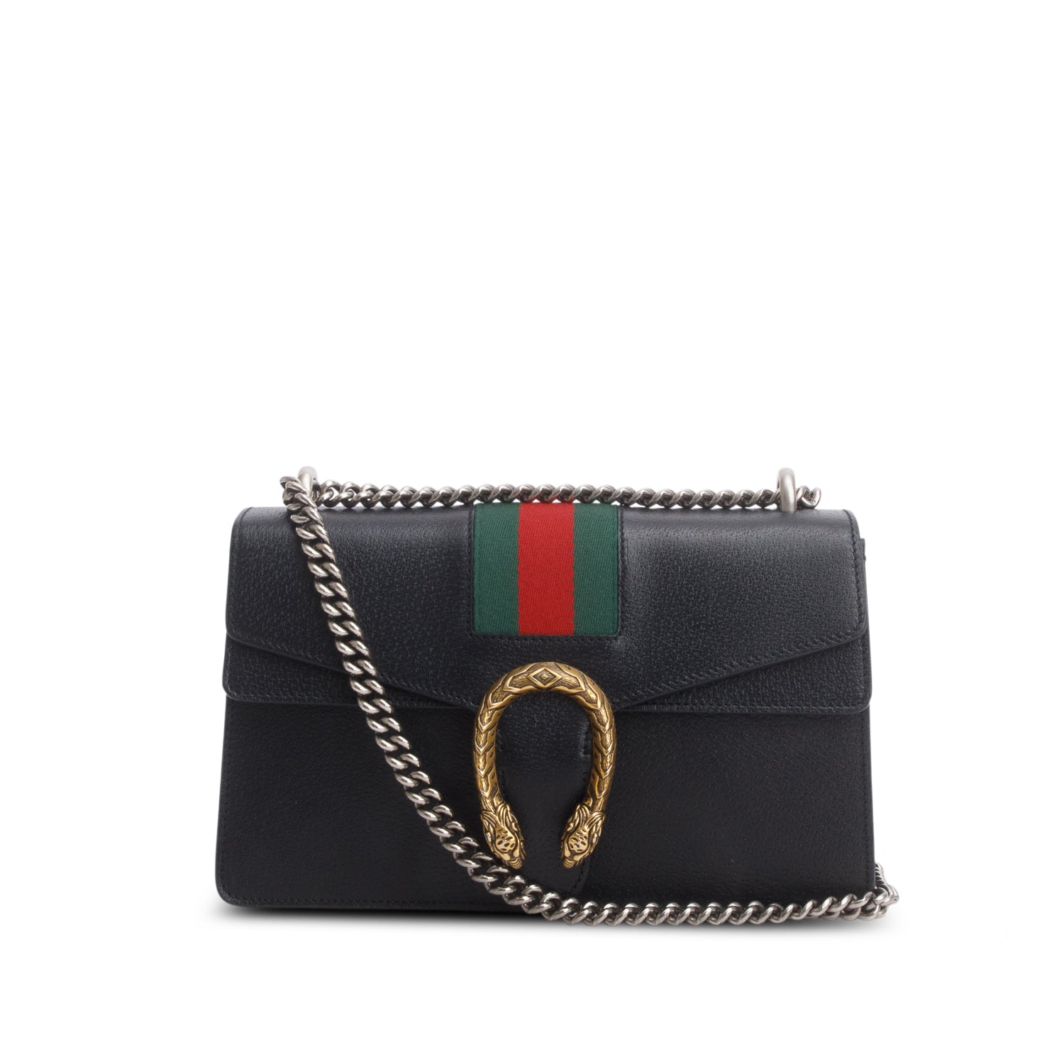 Black GG Dollar Calfskin Web Medium Dionysus Shoulder Bag