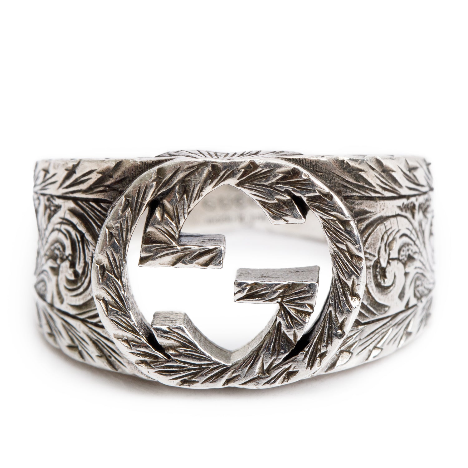 Sterling Silver Interlocking G Paisley Signet Ring, Size 22 9.75