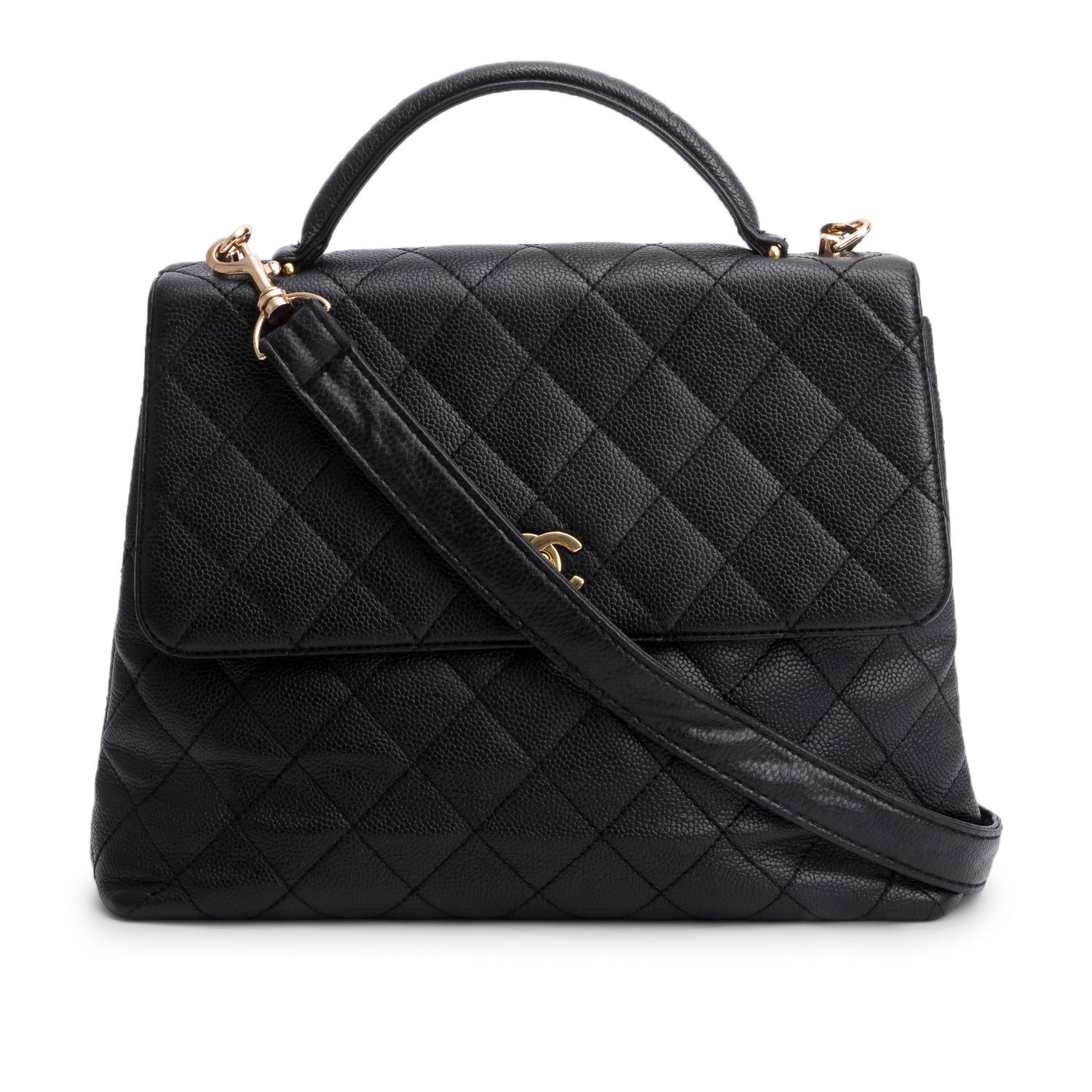 Vintage Black Caviar Jumbo Kelly Flap Bag w/ Strap