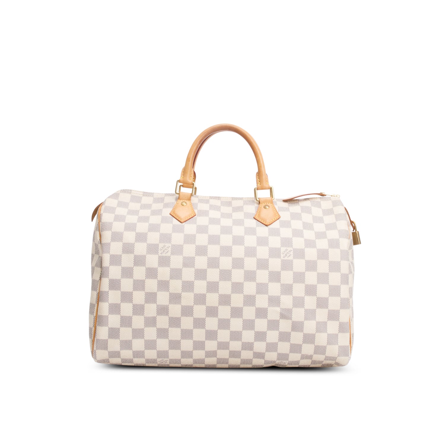 Condition: Very Good; slight tarnishing at hardware; light marks at exterior vachetta leather trim and handles; light marks at interior