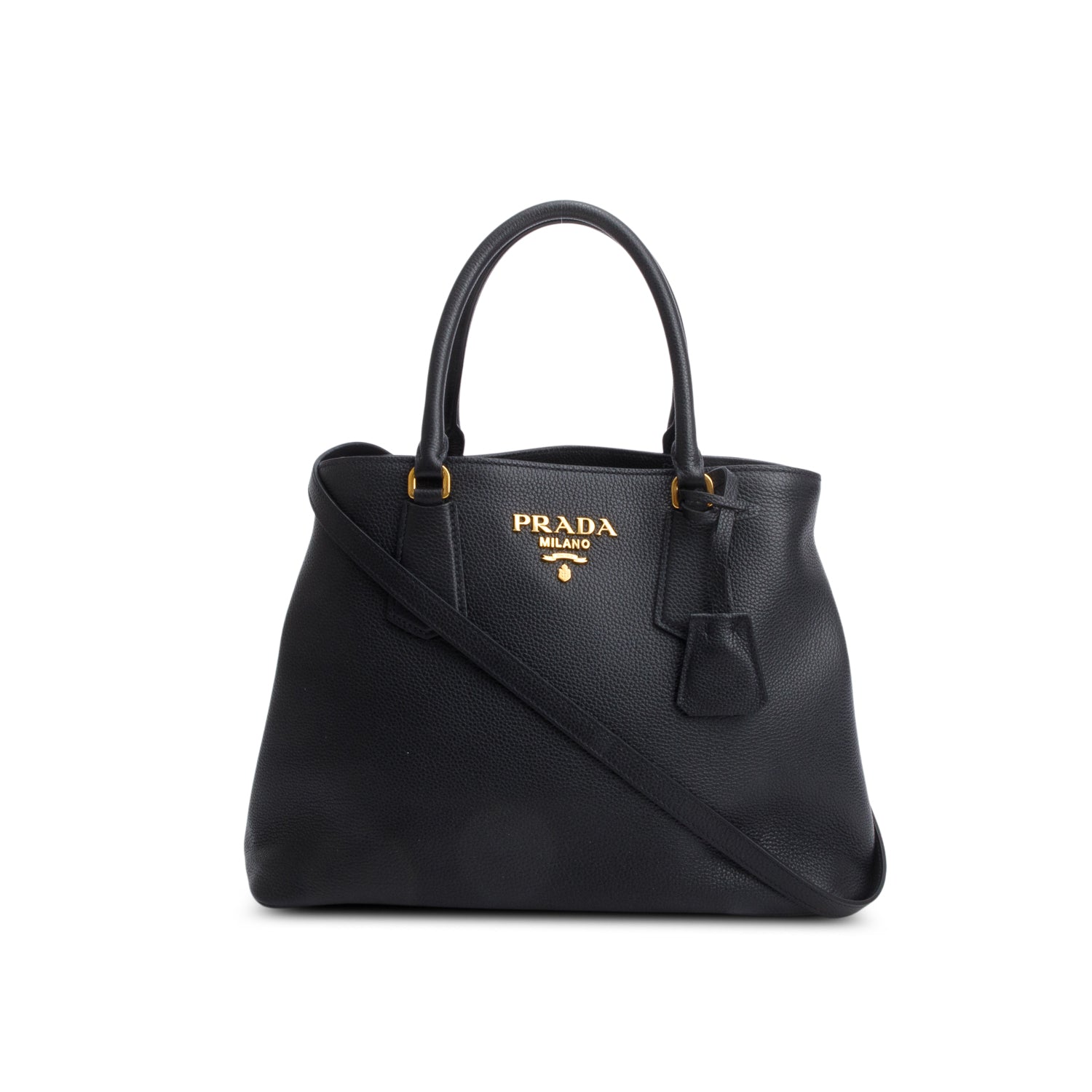 Black Vitello Phenix Cuir Medium Double Bag w/ Strap