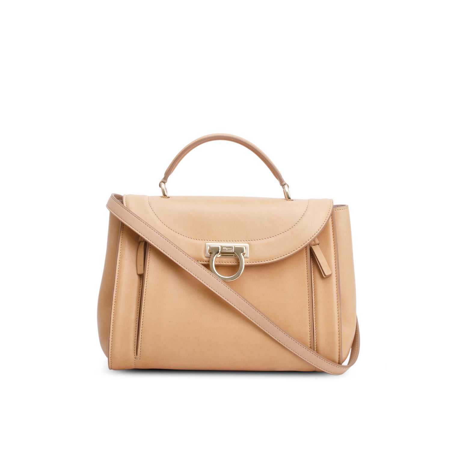 Salvatore Beige Calfskin Sofia Rainbow Top Handle Bag w/ Strap