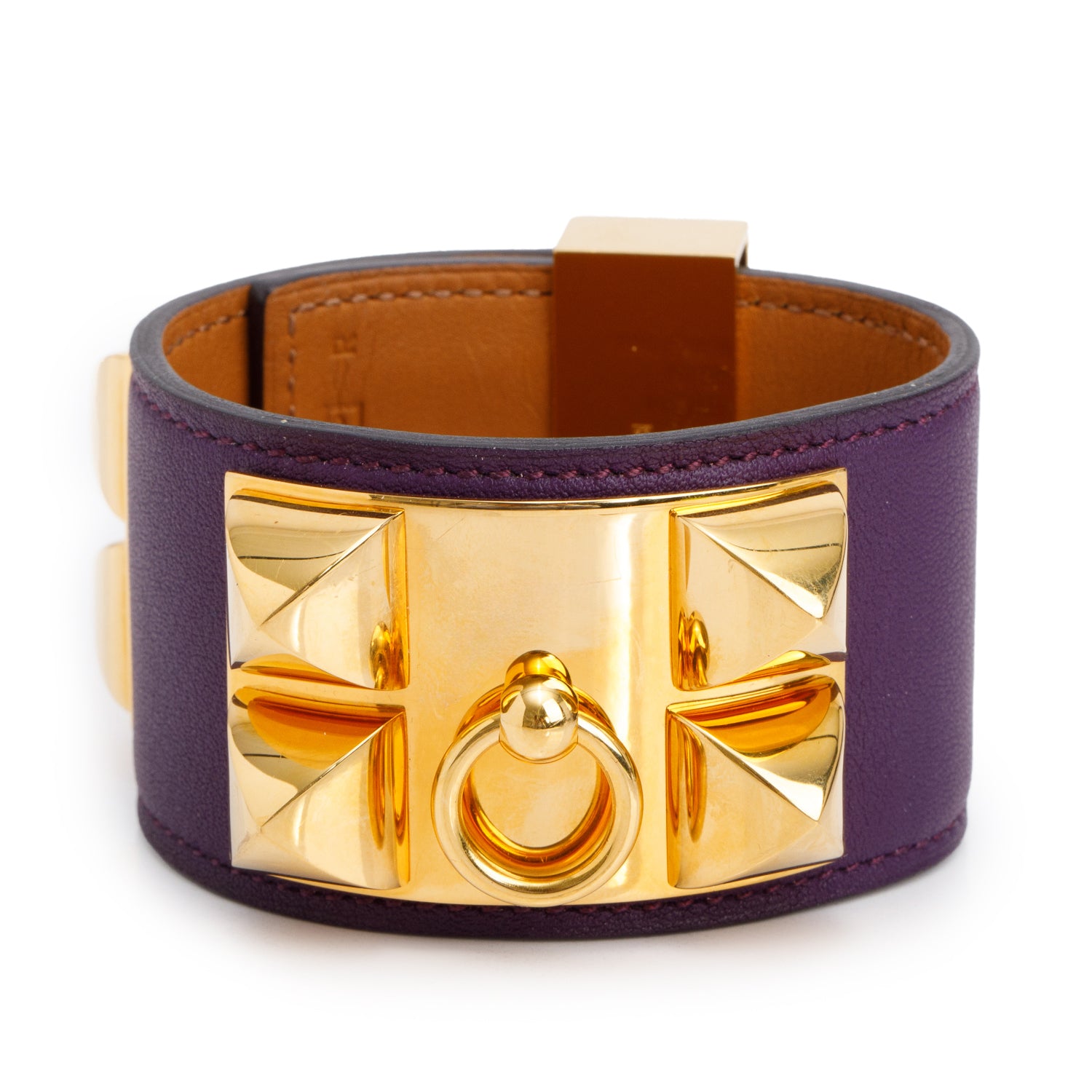 Gold-Plated Purple Box Calfskin Leather Collier de Chien Bracelet, Size S w/ Box