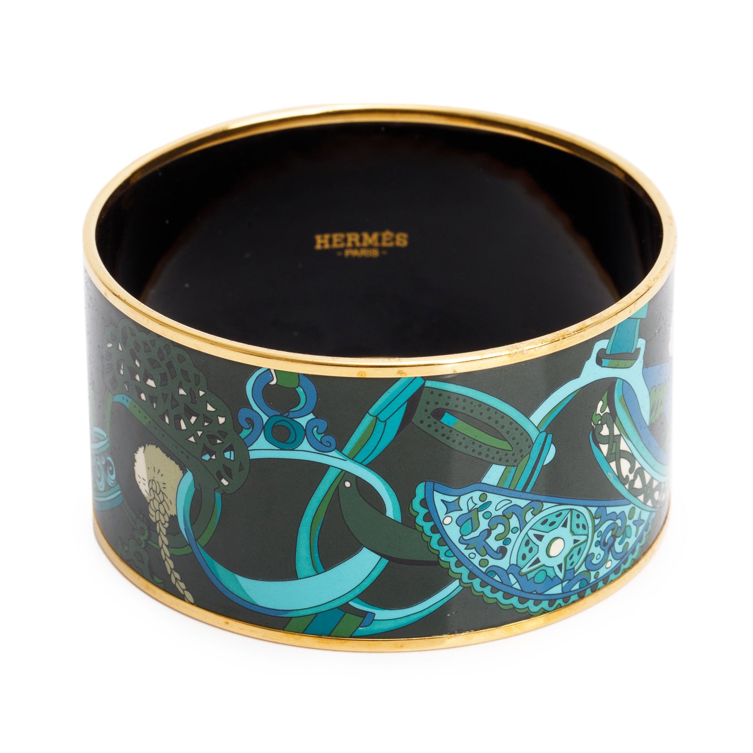 Gold-Plated Green/Multicolor Enamel Extra Wide Bangle w/ Box