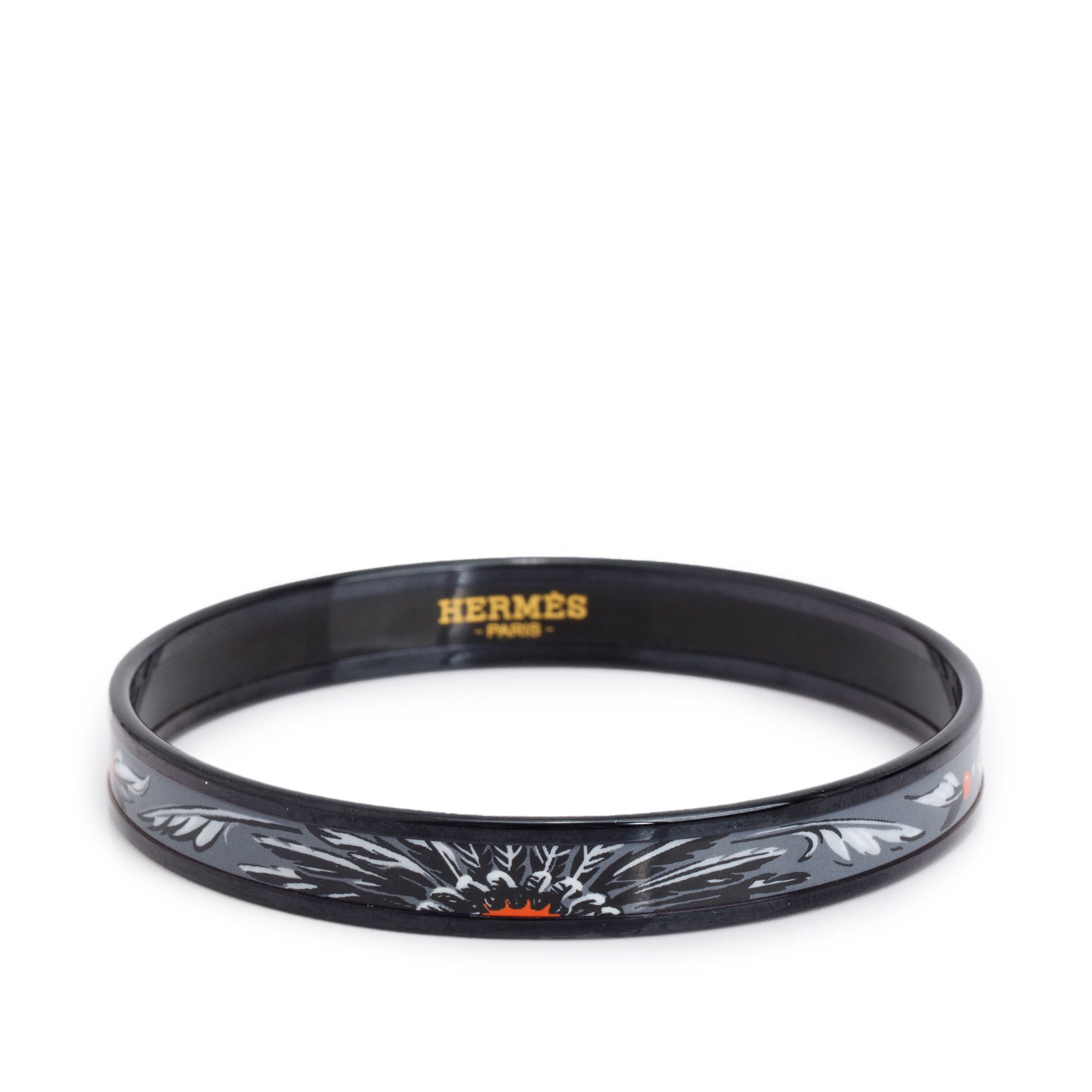 Black PVD Black/Grey Brazil Painted Enamel Narrow Bangle w/ Box
