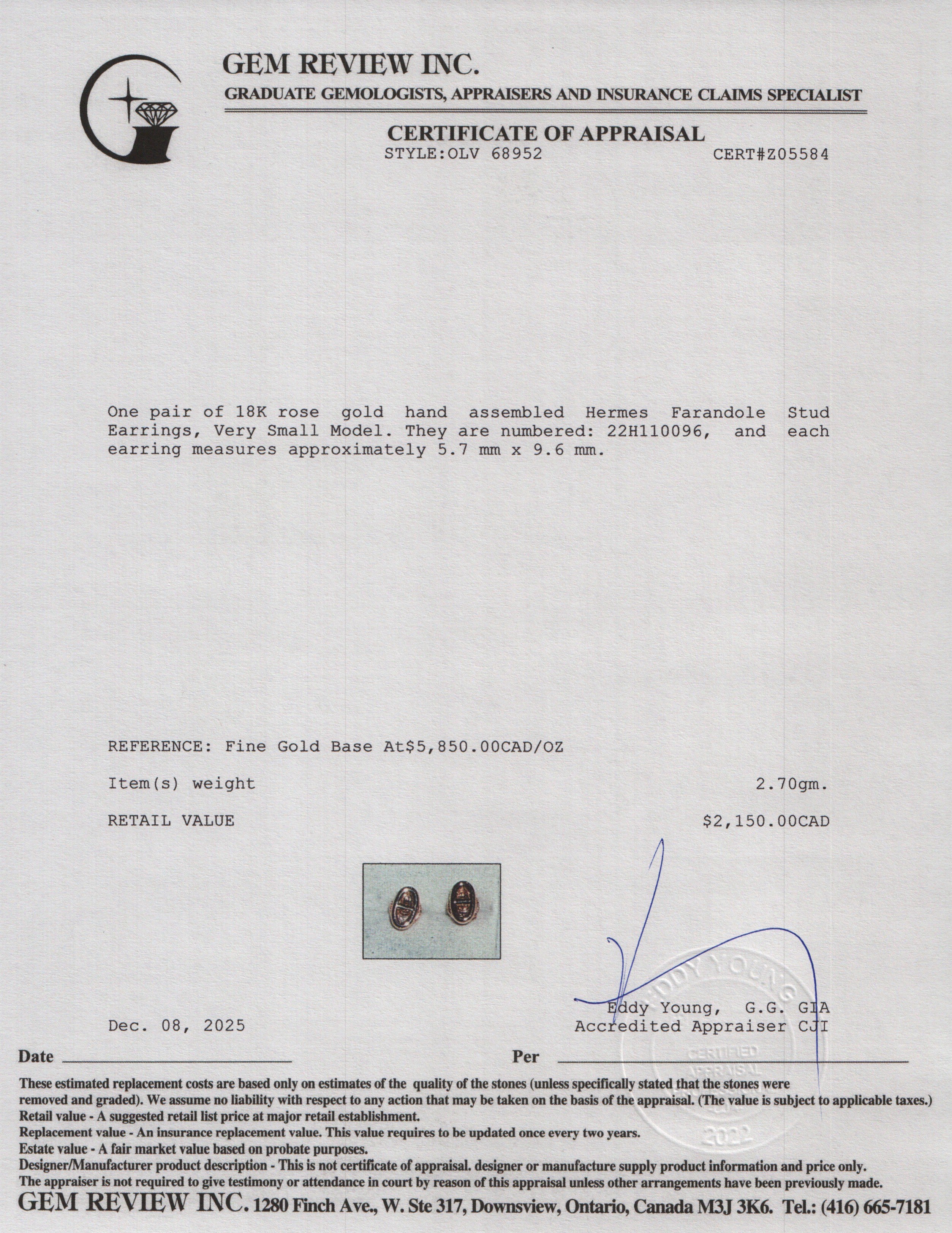 18k Rose Gold Farandole Stud Earrings, Very Small Model w/ Box