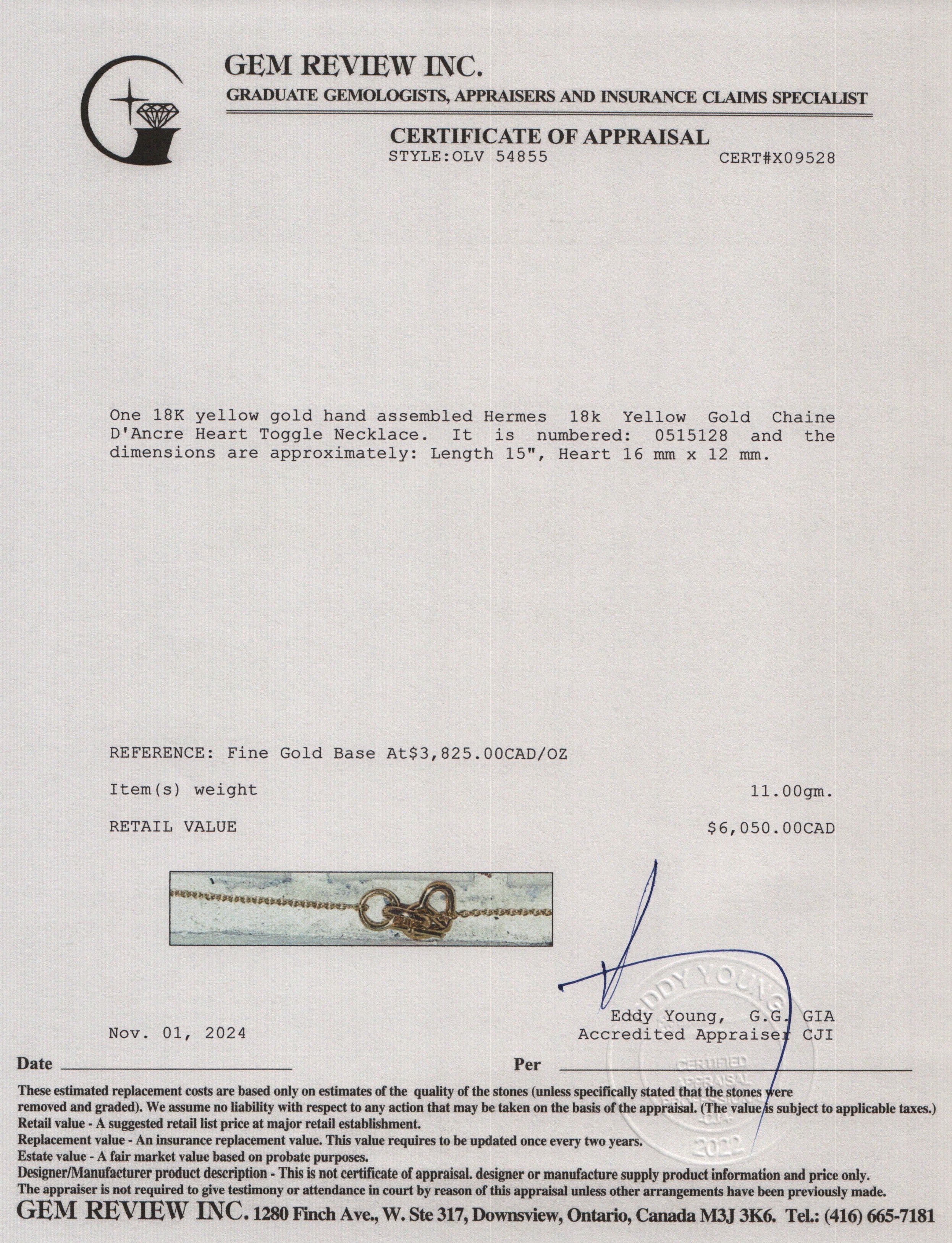 18k Yellow Gold Chaine D'Ancre Heart Toggle Necklace