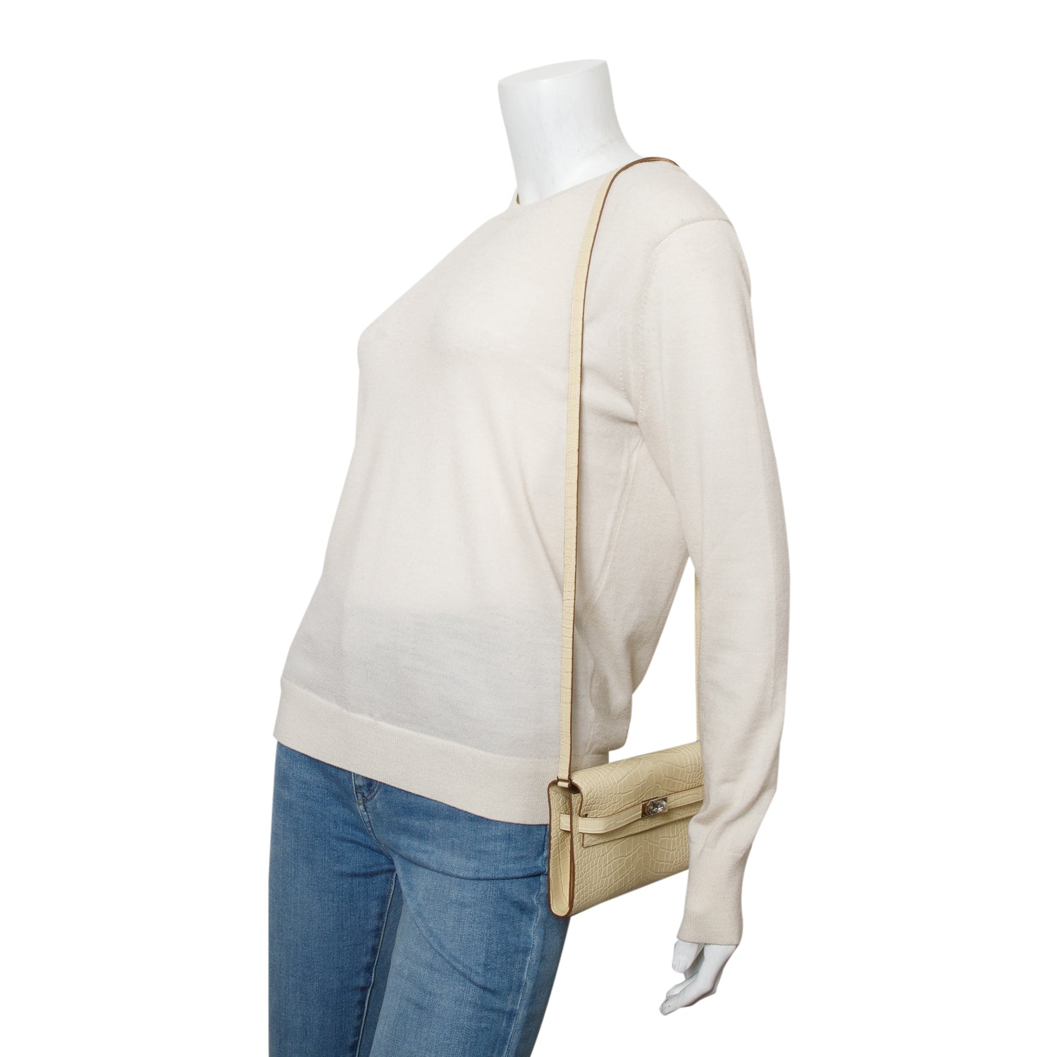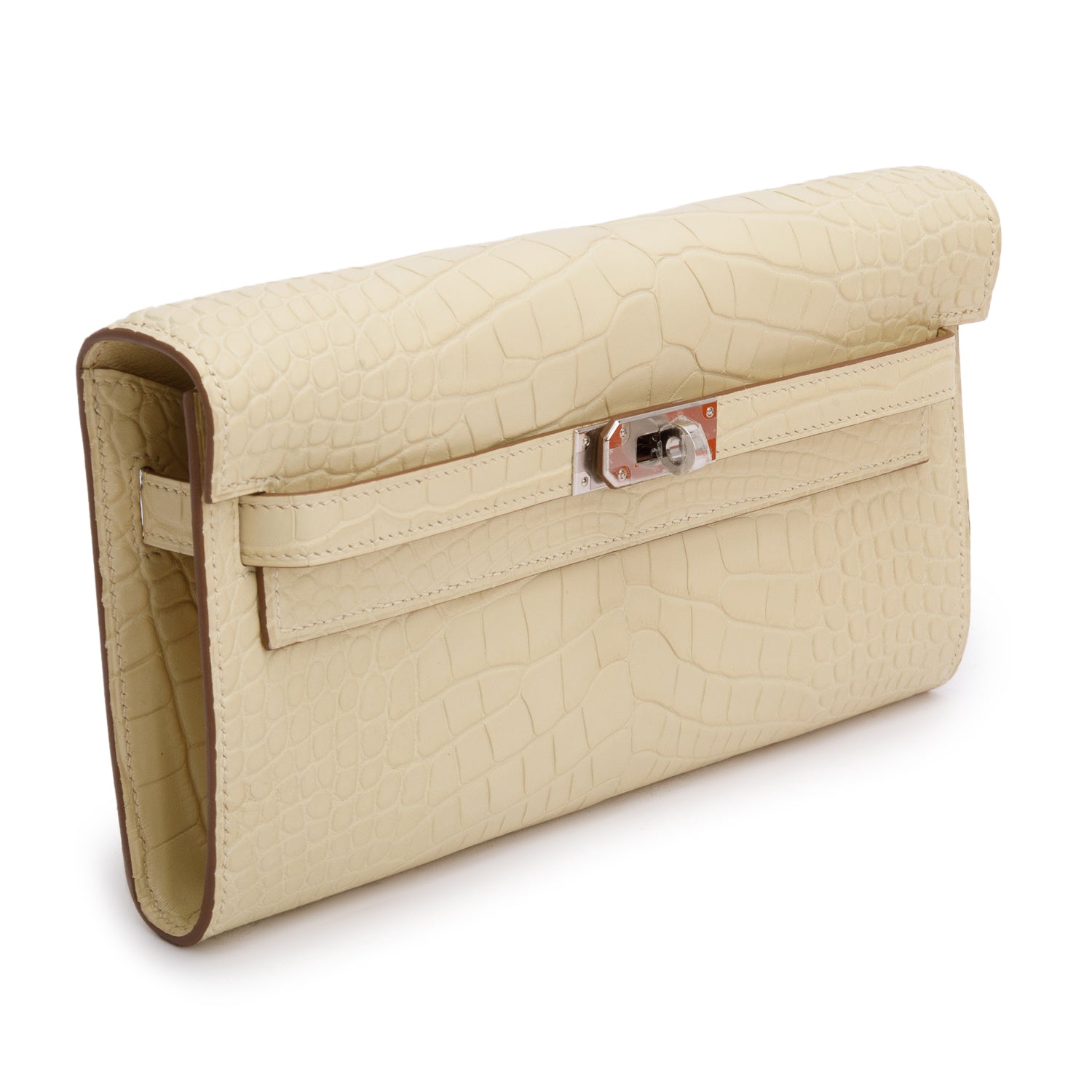 2023 Vanille Alligator Mat Kelly Wallet To Go w/ Strap & Box