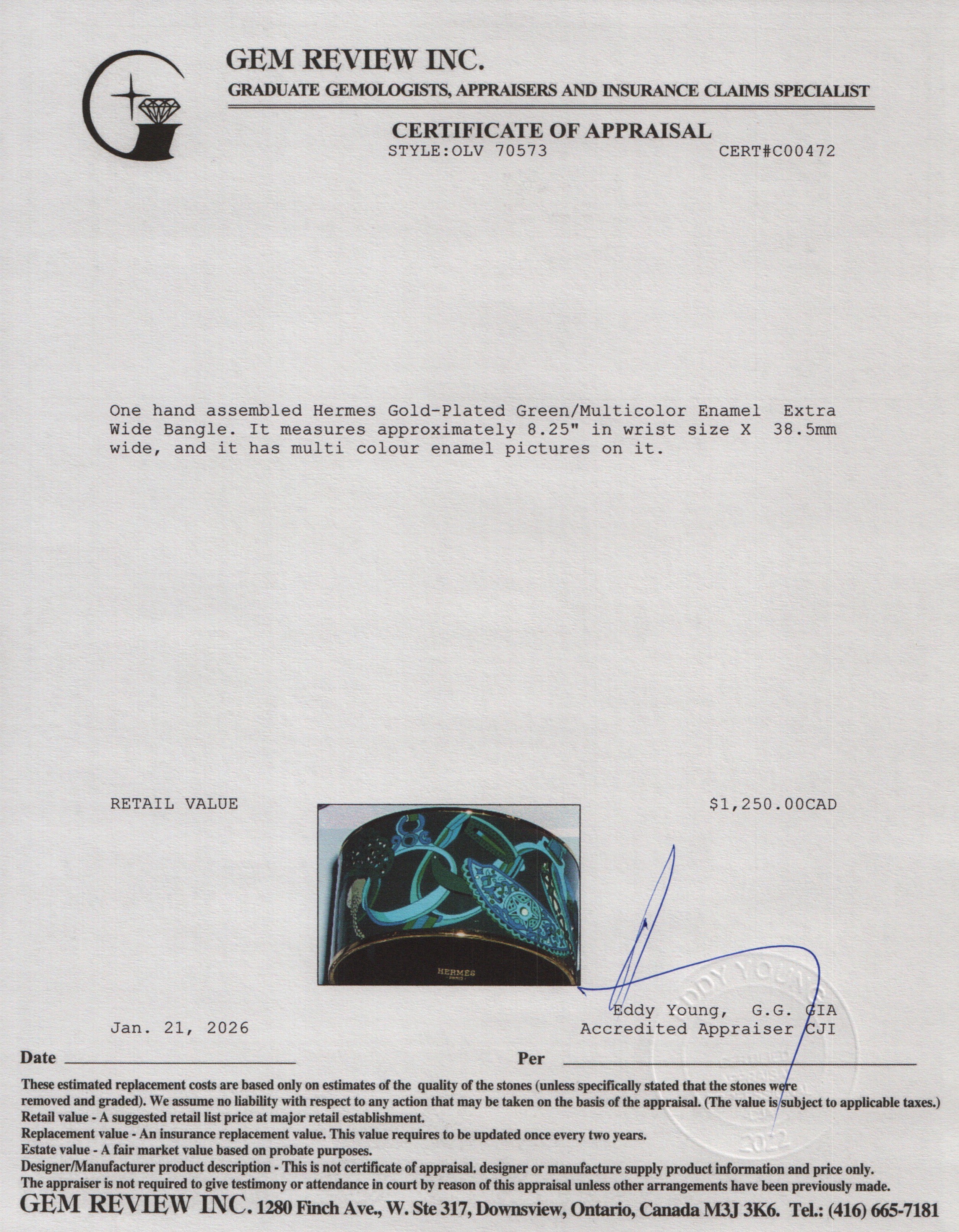 Gold-Plated Green/Multicolor Enamel Extra Wide Bangle w/ Box