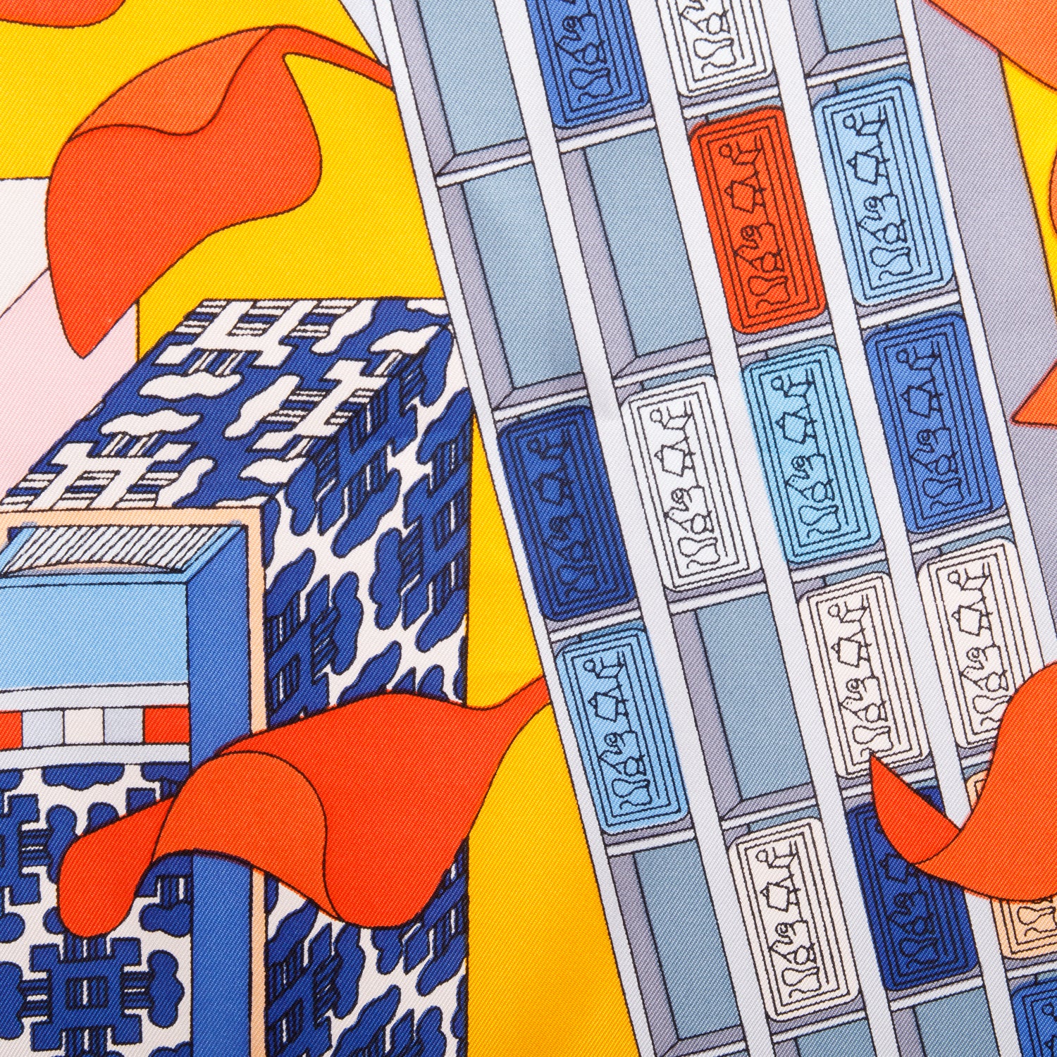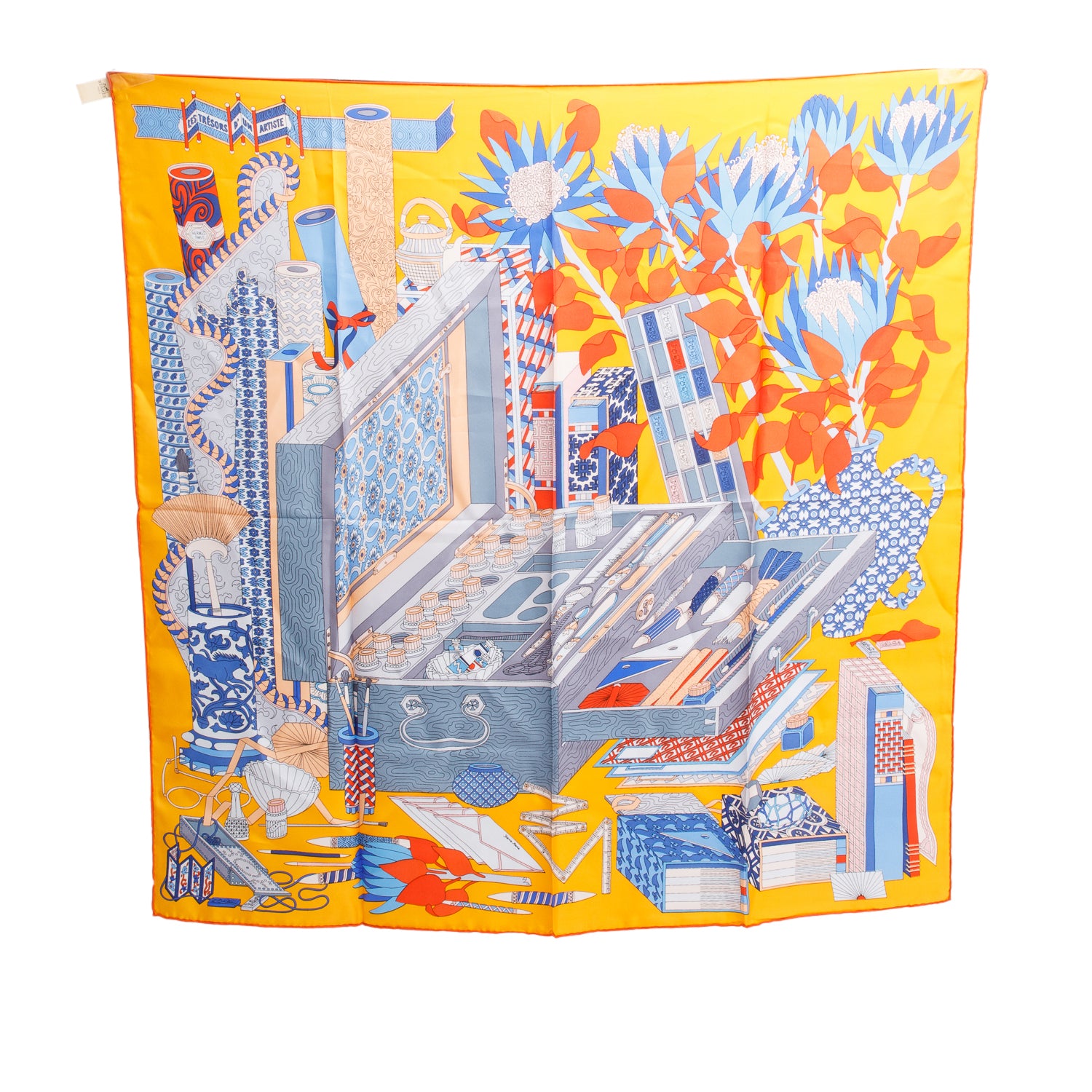 Orange Multicolor 'Marquis De Laffayette' Silk Scarf 90