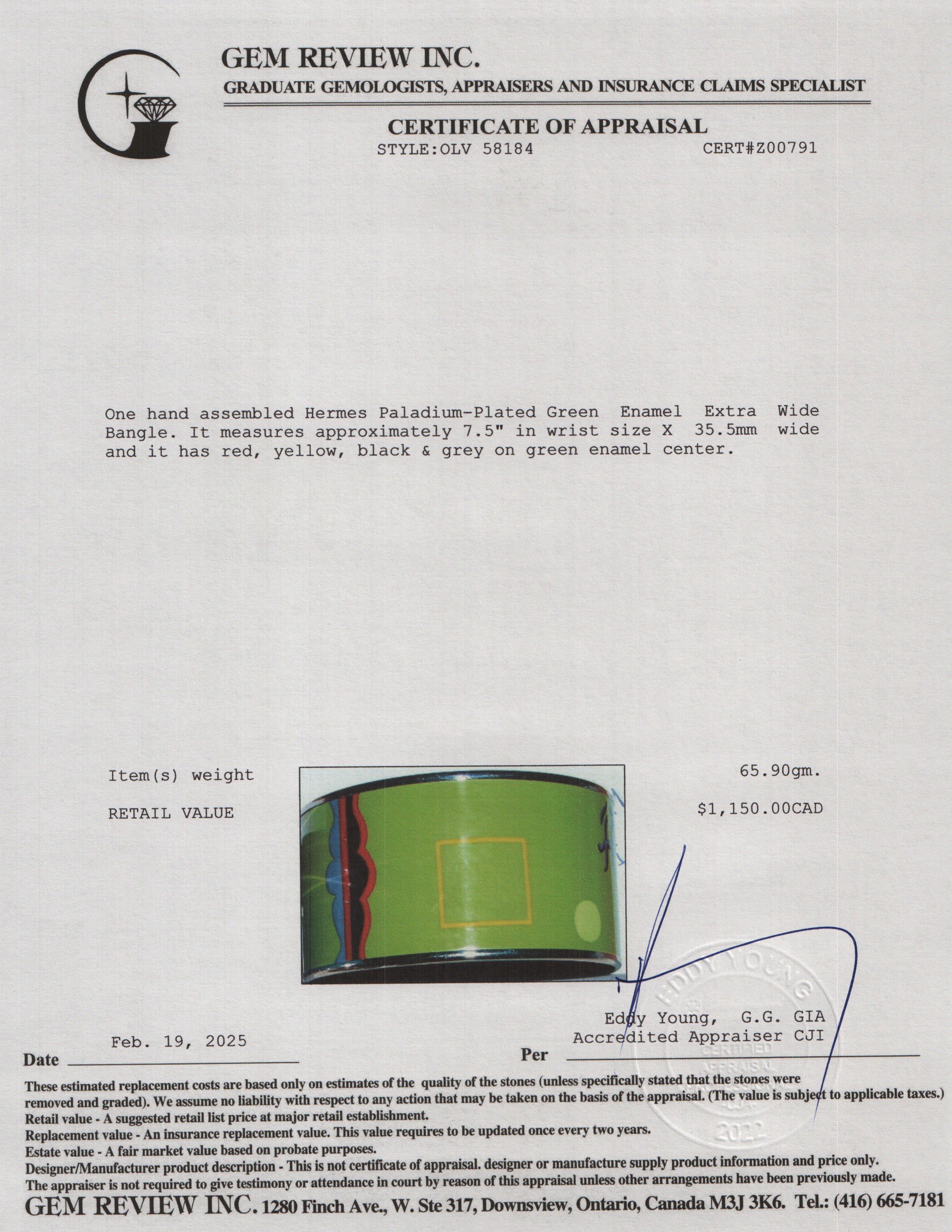 Paladium-Plated Green Enamel Extra Wide Bangle