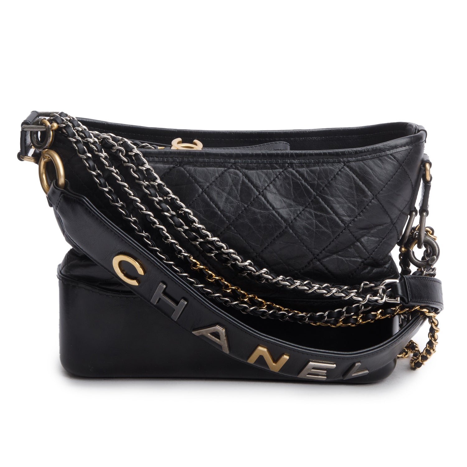Black & White Aged Calfskin Leather Chevron Quilted Small Gabrielle Hobo w/ Authenticity Card