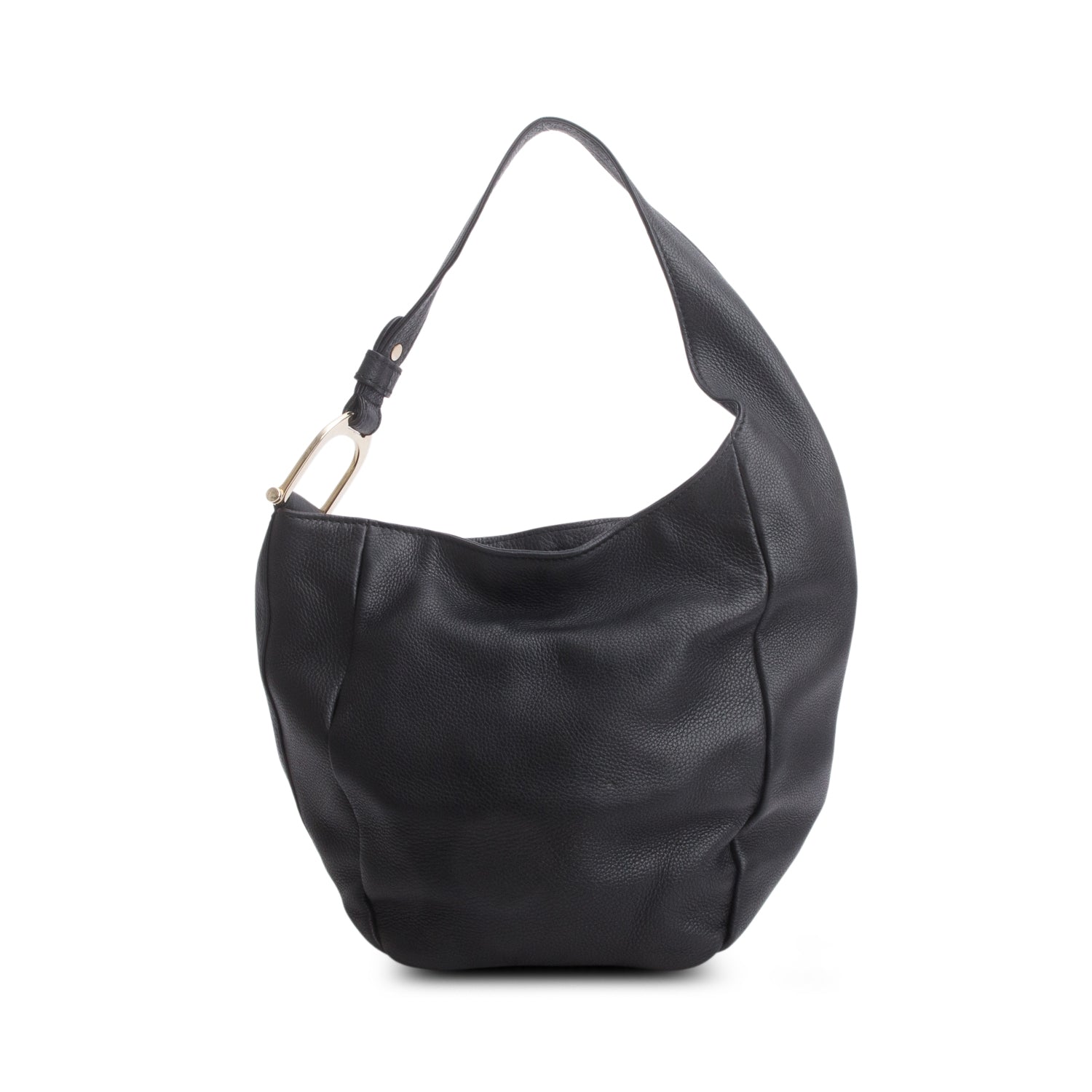 Black Calfskin Leather Roxy Shoulder Bag w/ Pouch