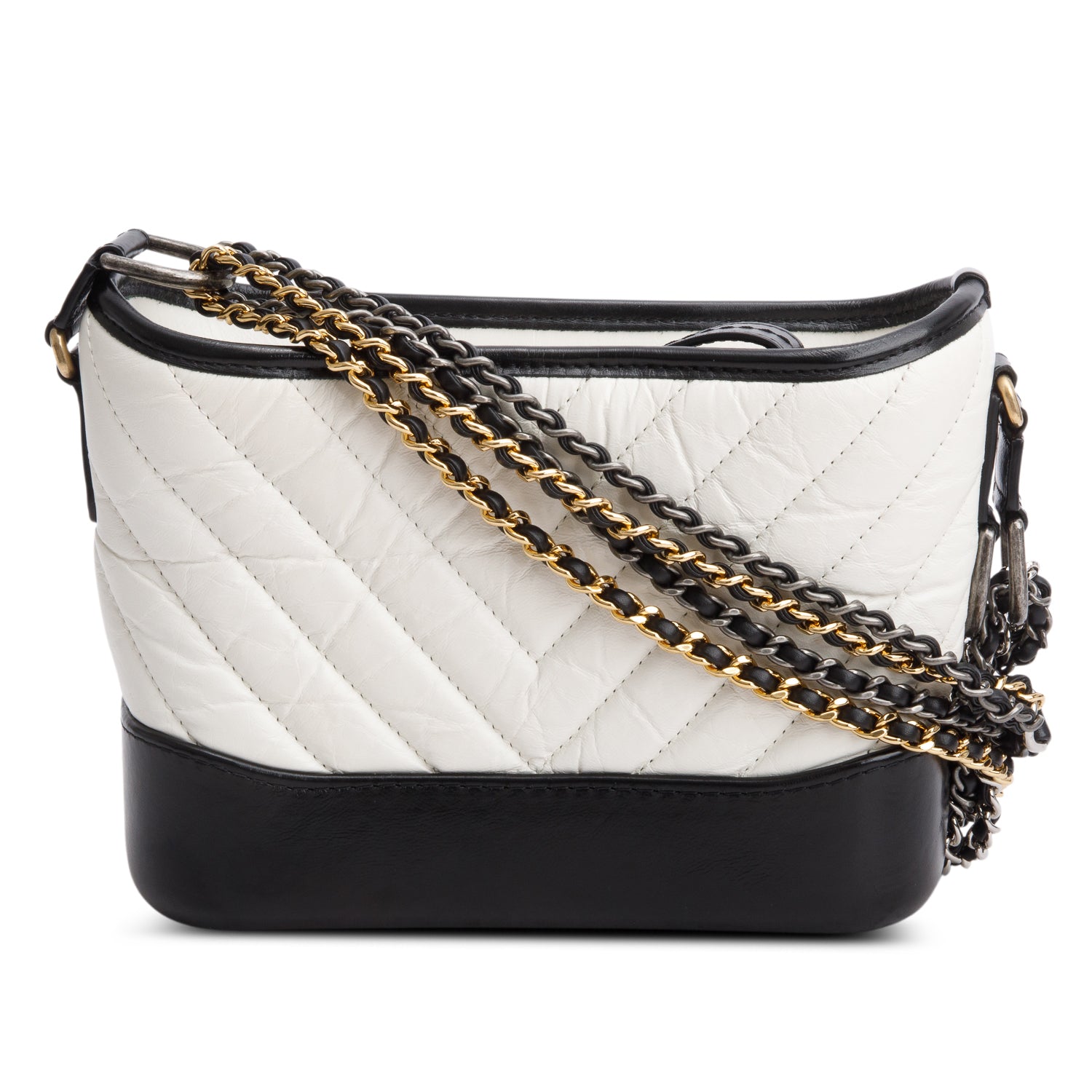 Black & White Aged Calfskin Leather Small Gabrielle Hobo