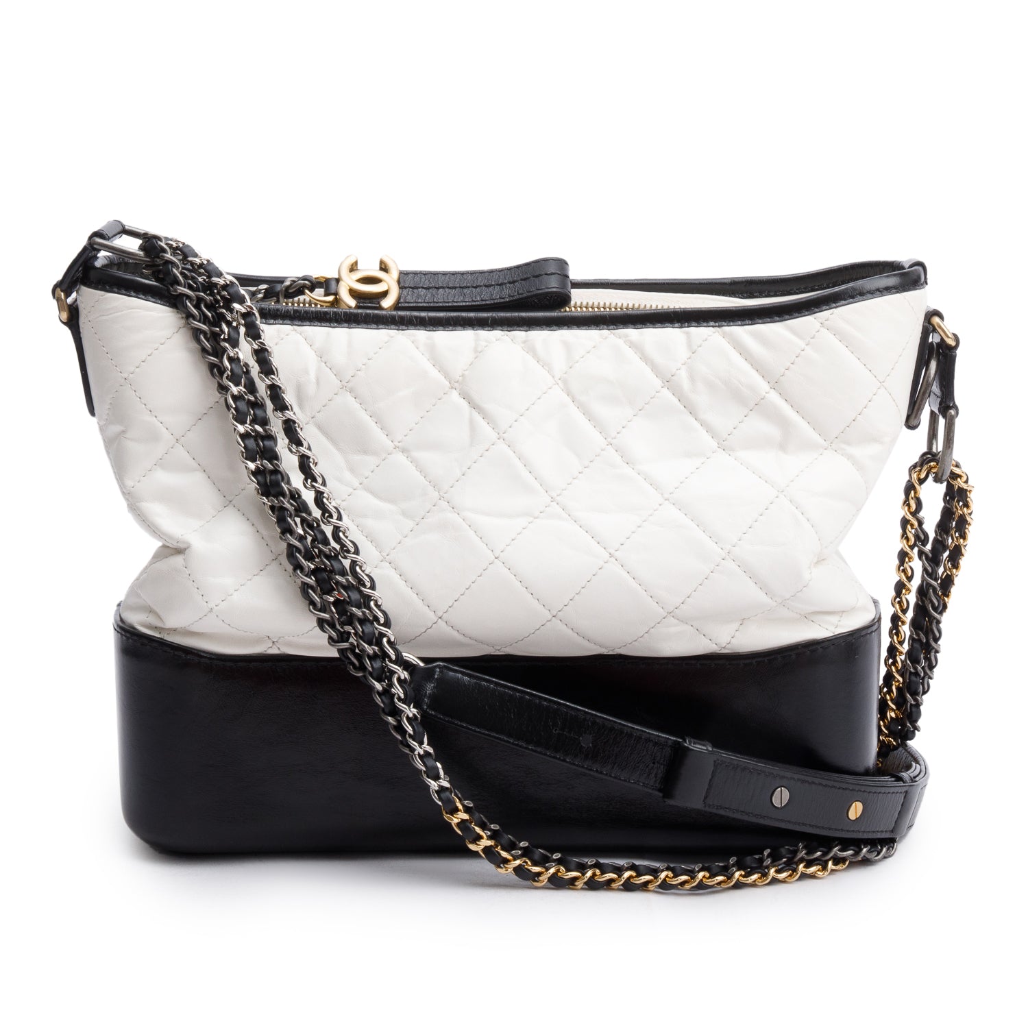 Black & White Aged Calfskin Leather Medium Gabrielle Hobo w/ Box & Authenticity Card