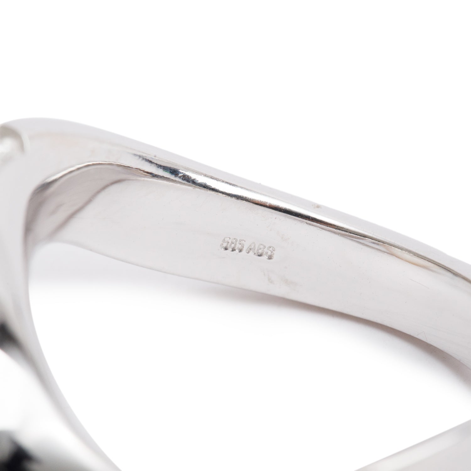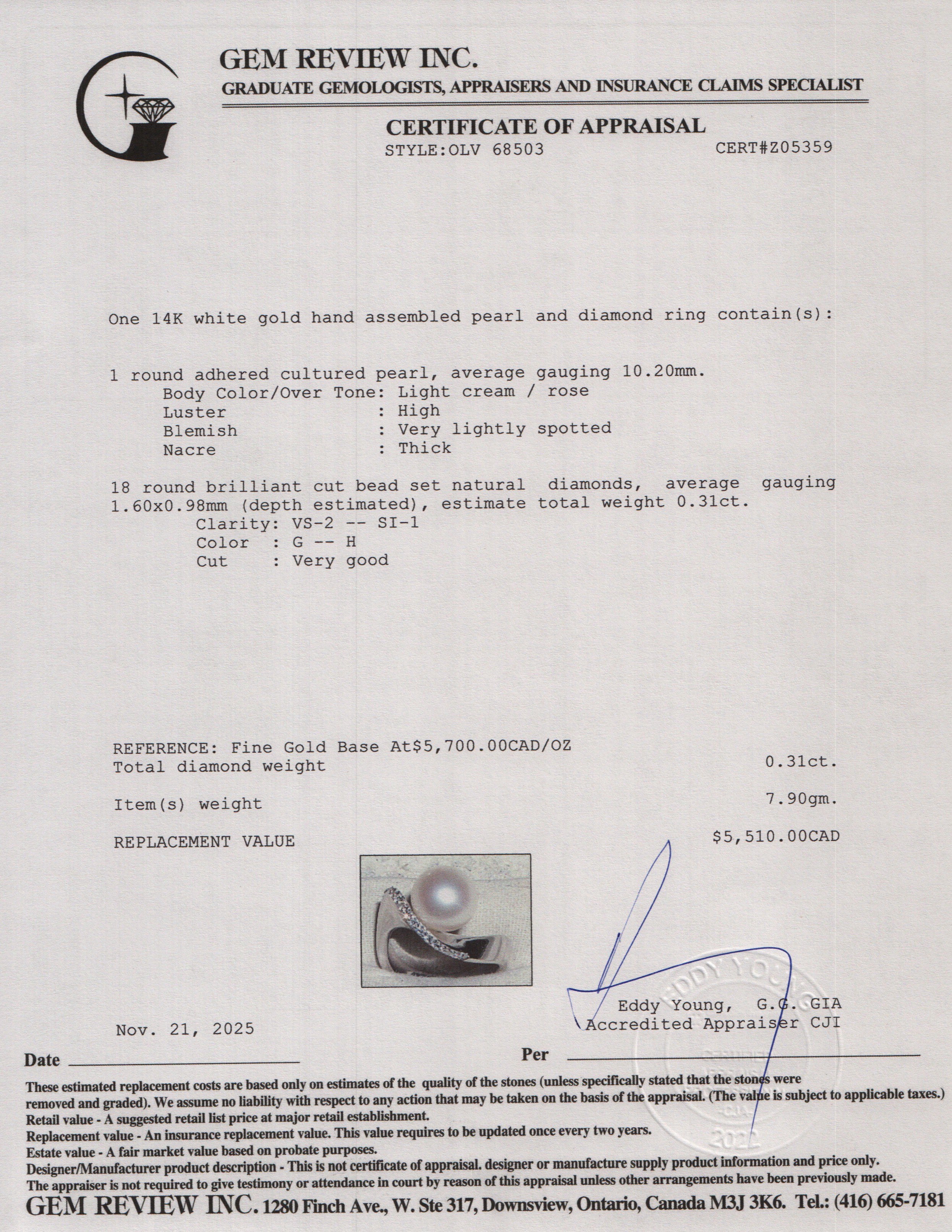 14k White Gold Pearl & Diamond Ring, Size 7.5