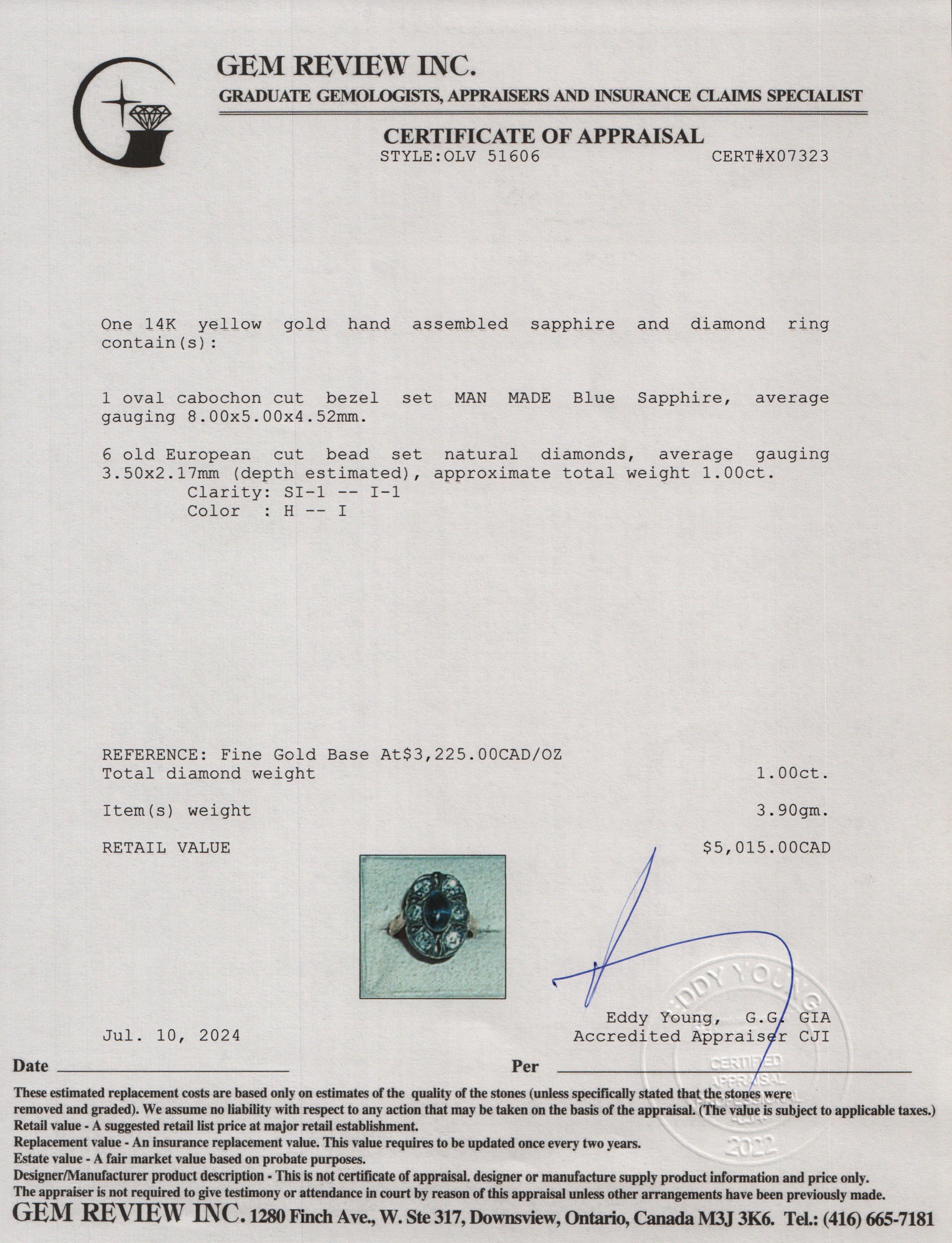 Antique 14k Yellow Gold Sapphire & Diamond Ring, Size 4