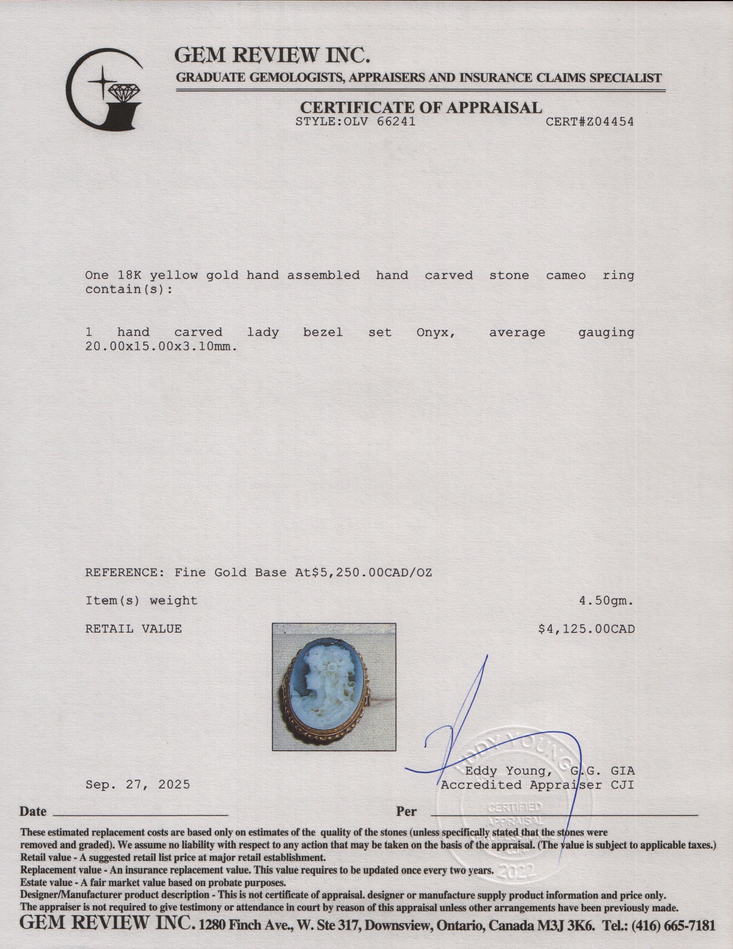 Antique 18k Yellow Gold Carved Stone Cameo Ring, Size 5