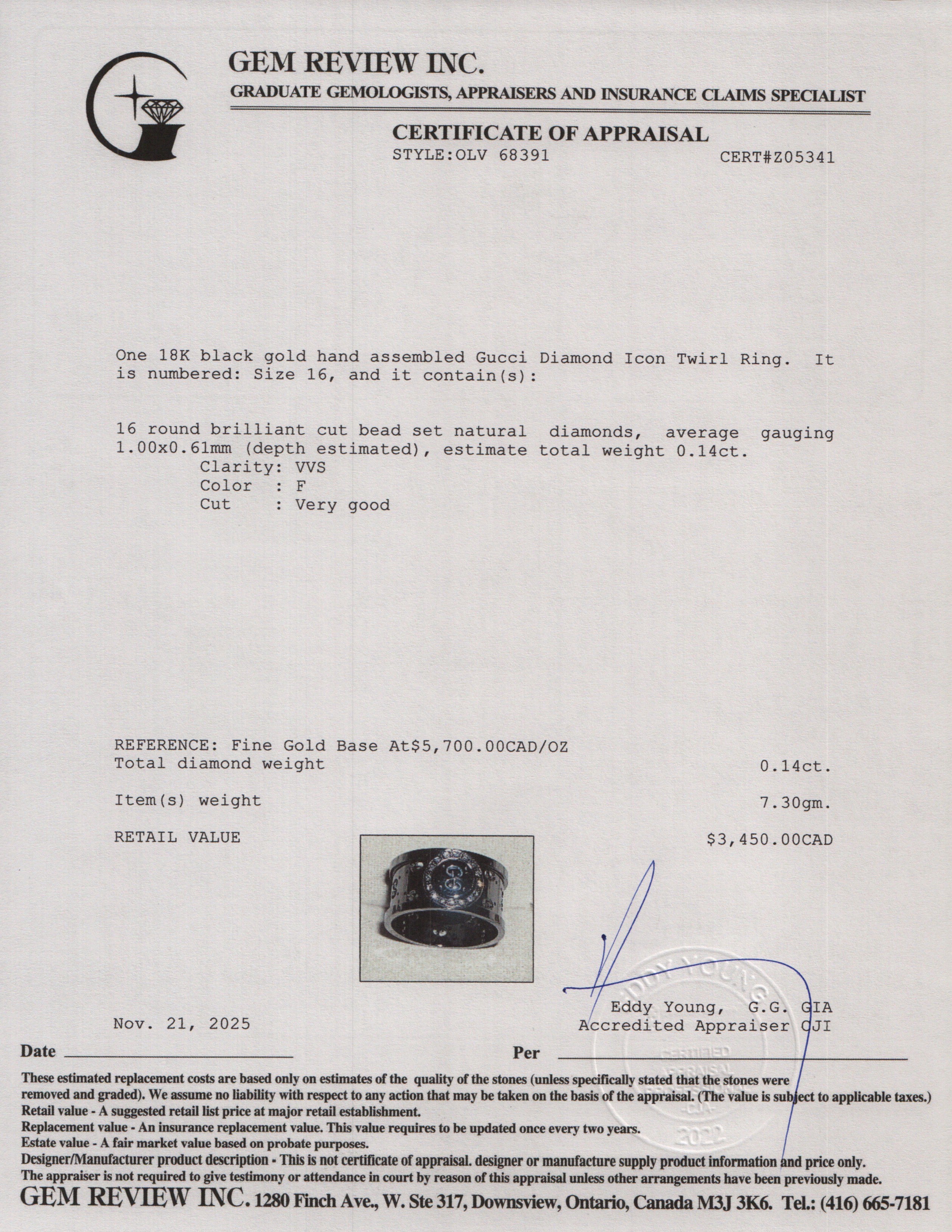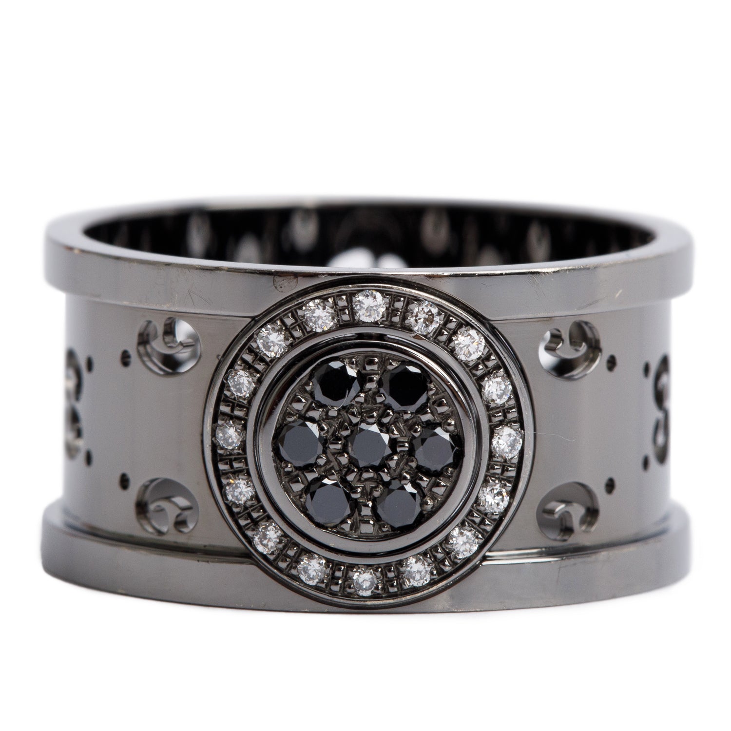 Black Coated 18k White Gold Diamond Icon Twirl Ring, Size 16 7.25 w/ Box