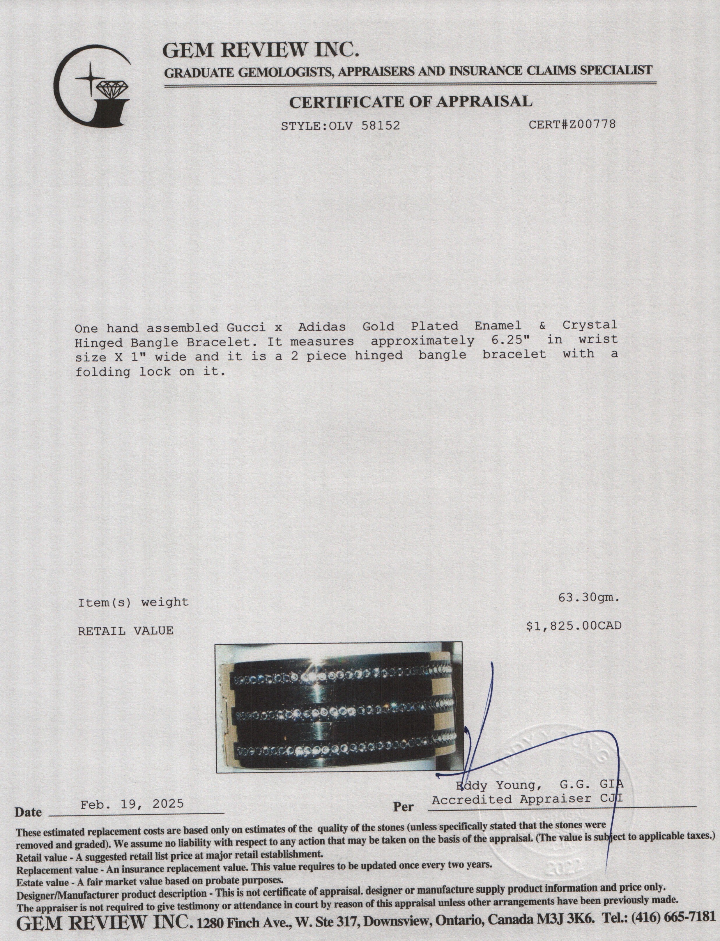 x Adidas Gold Plated Enamel & Crystal Hinged Bangle Bracelet