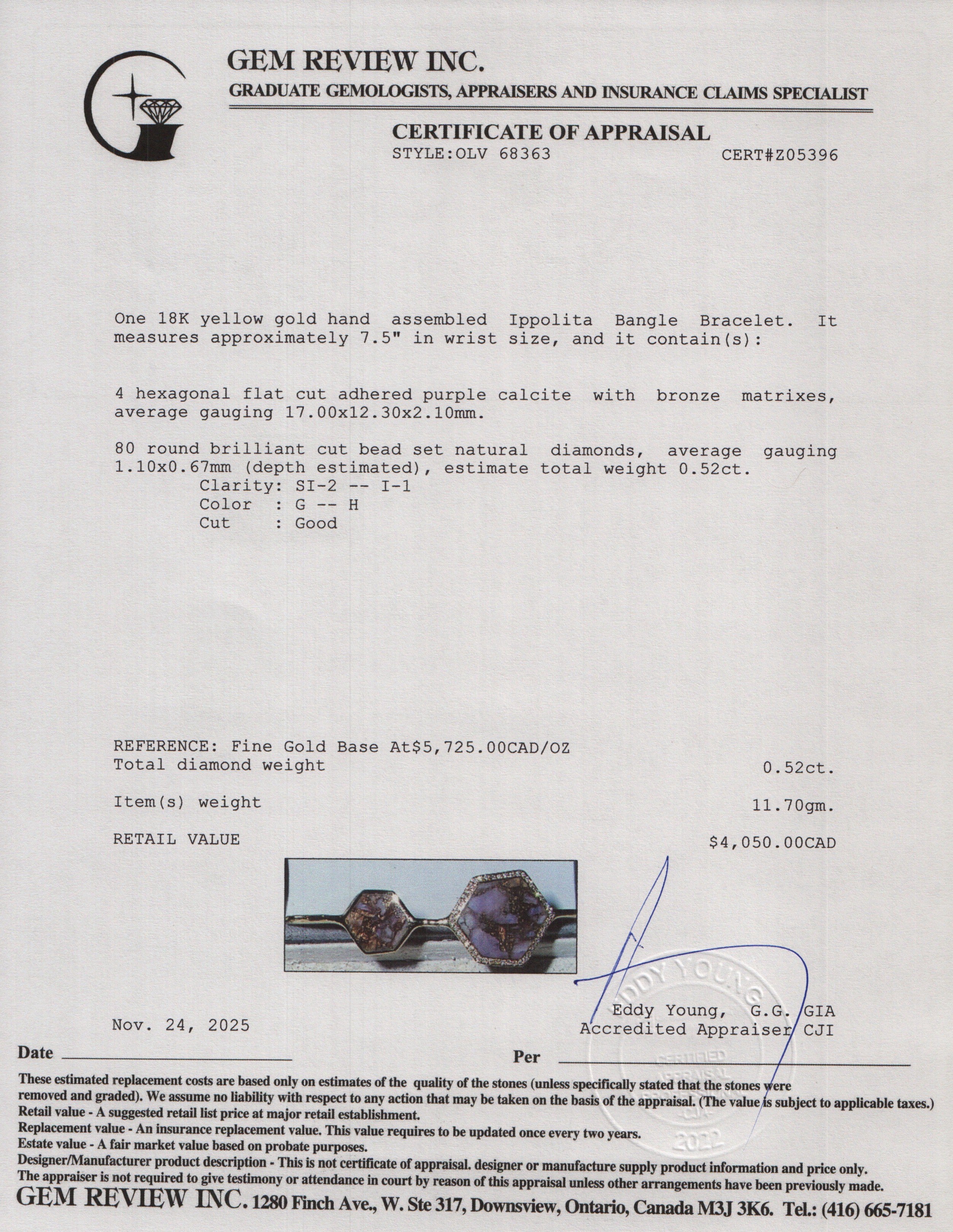 18k Yellow Gold Diamond & Calcite Bangle Bracelet