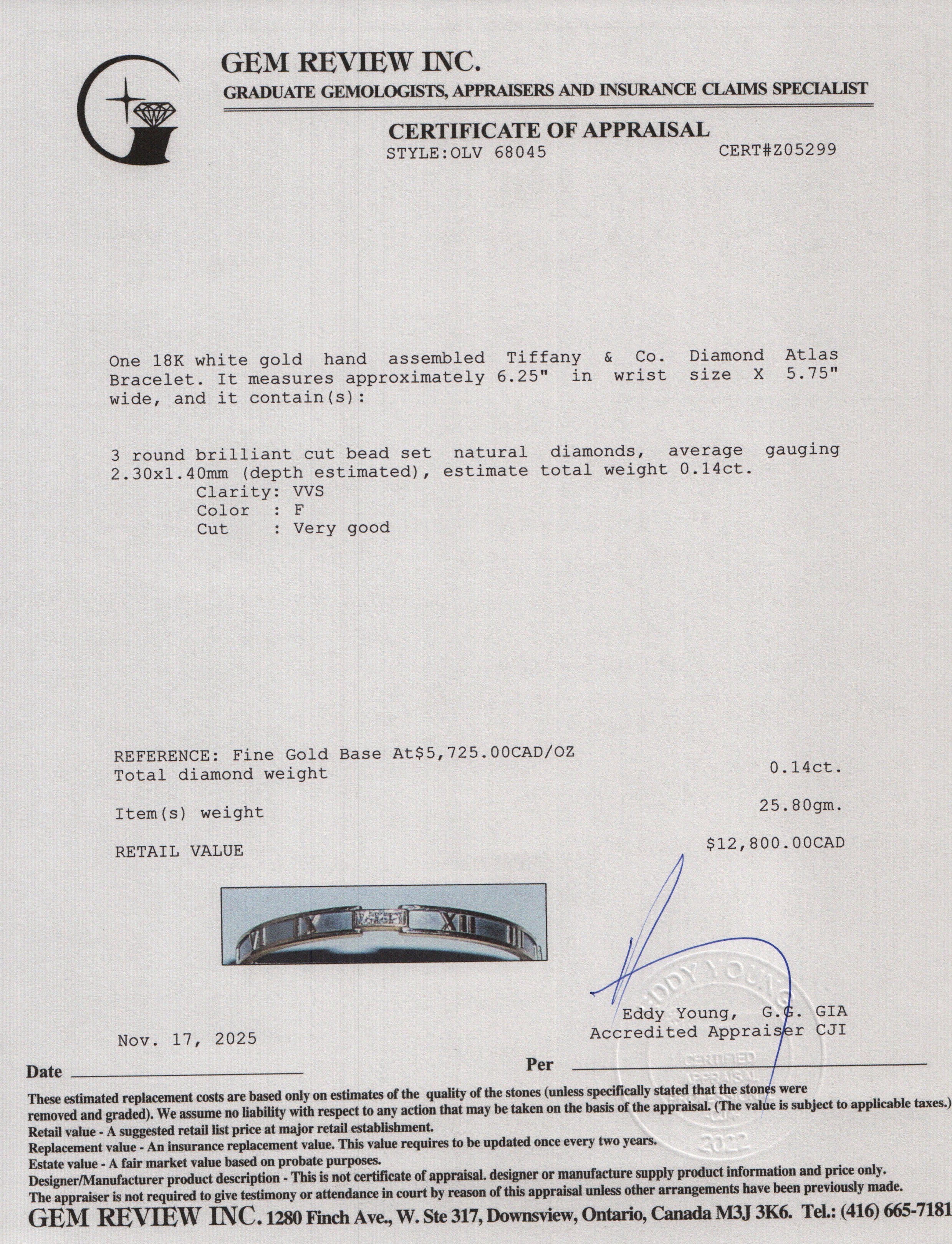 18k White Gold Diamond Atlas Bracelet w/ Box