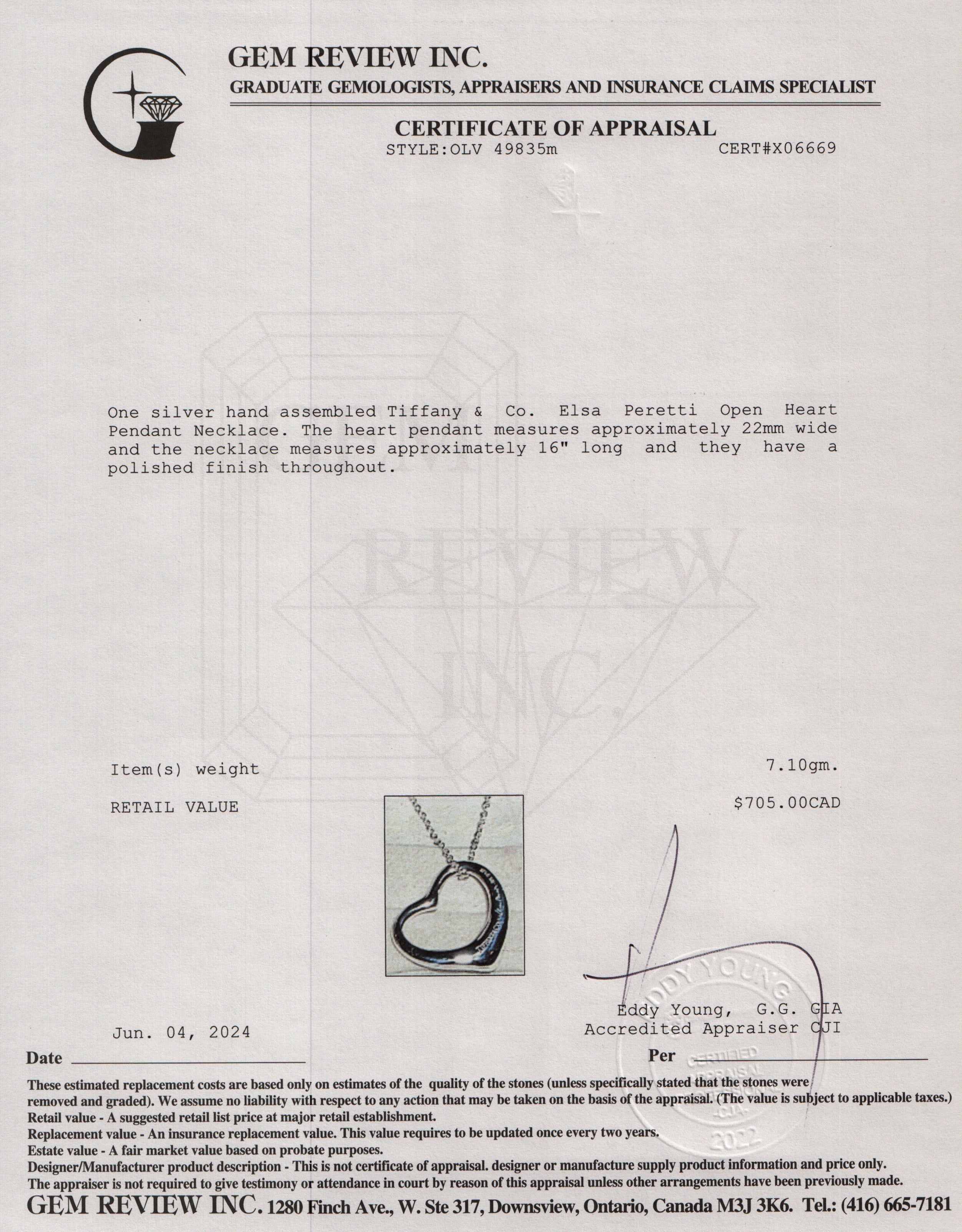 Sterling Silver Elsa Peretti Open Heart Pendant Necklace, 22 MM