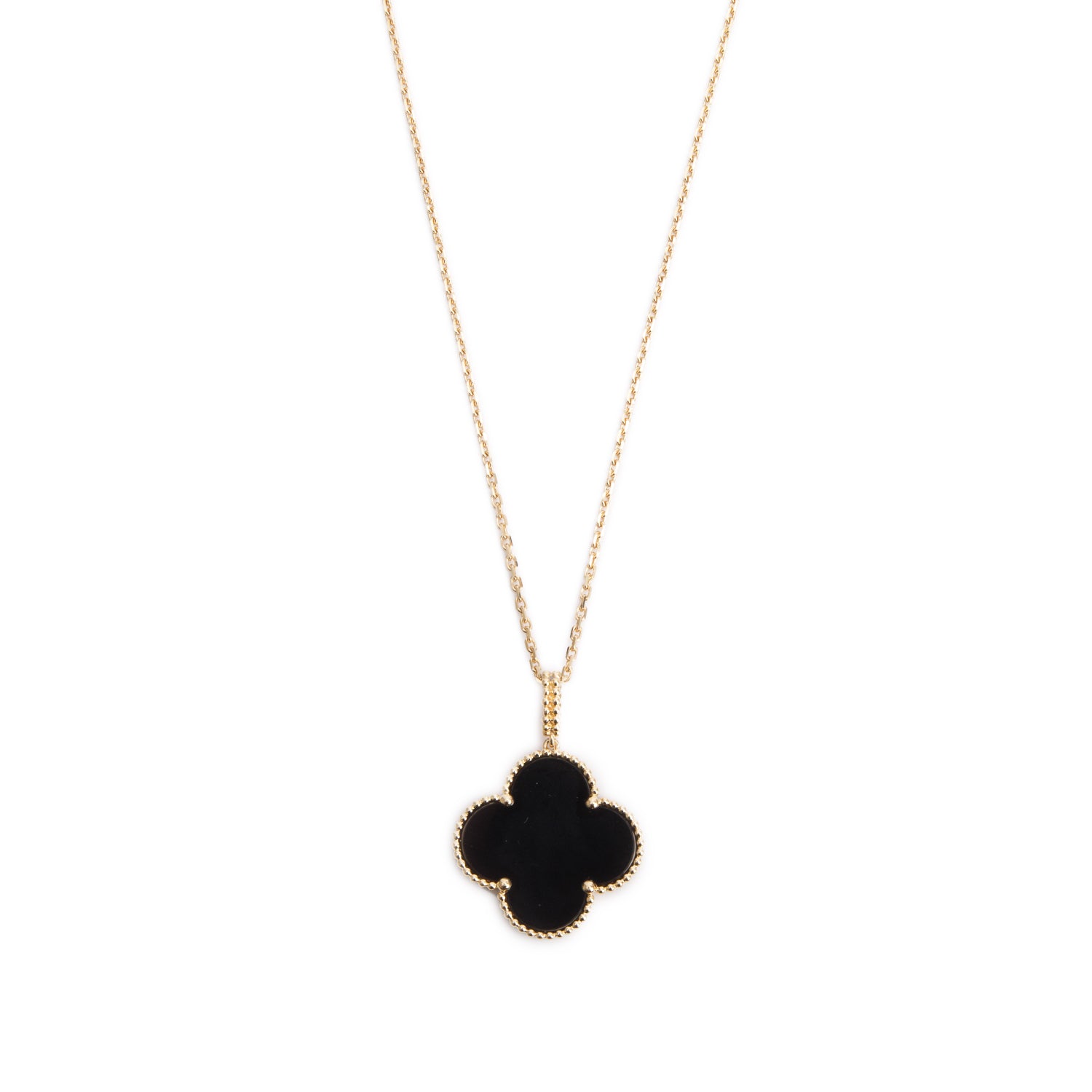 18k Yellow Gold Onyx Magic Alhambra 1 Motif Long Necklace w/ Box, Receipt, & Certificate