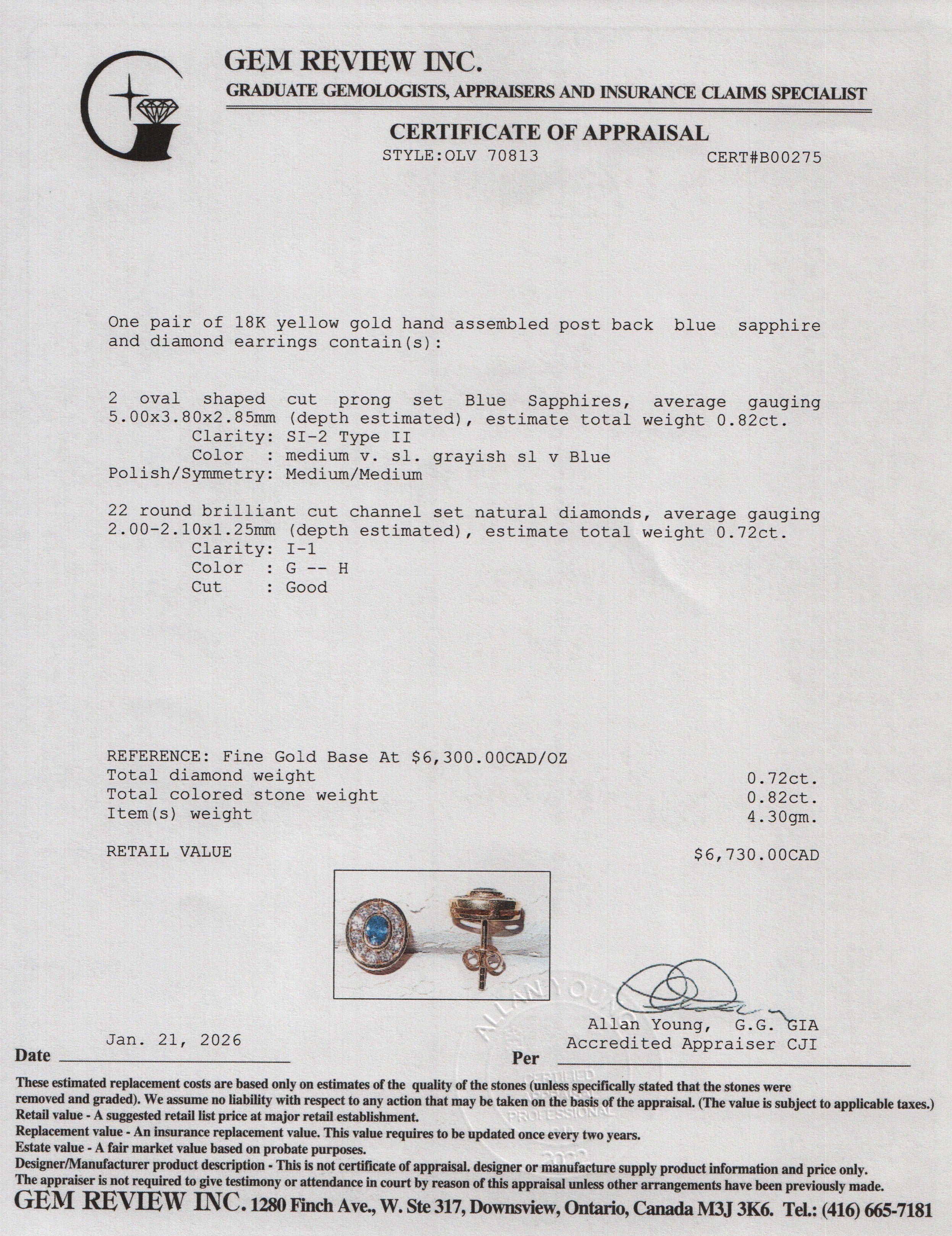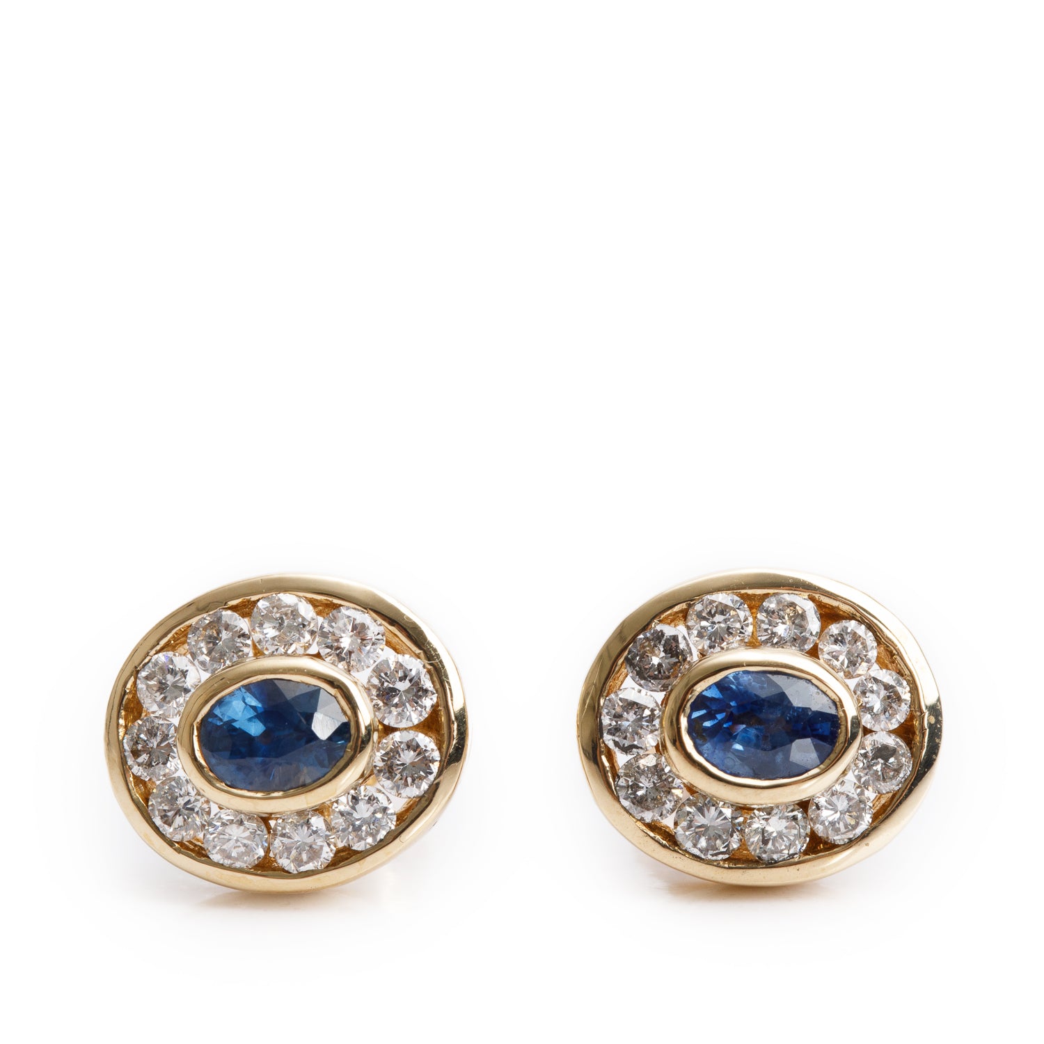 18k Yellow Gold Blue Sapphire & Diamond Earrings Stud Earrings