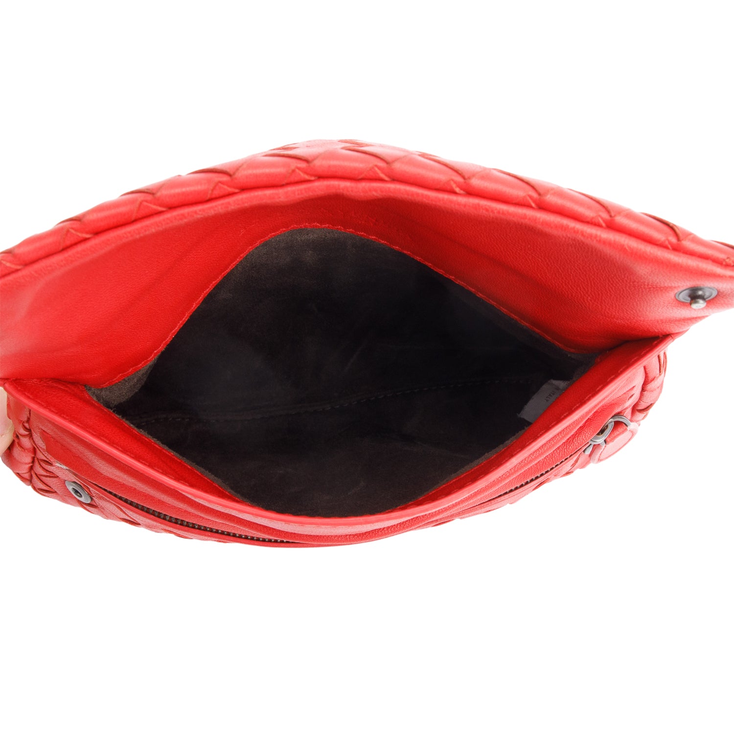 Condition: Good; light tarnishing at hardware; slight scuffing at exterior leather; slight mark at interior