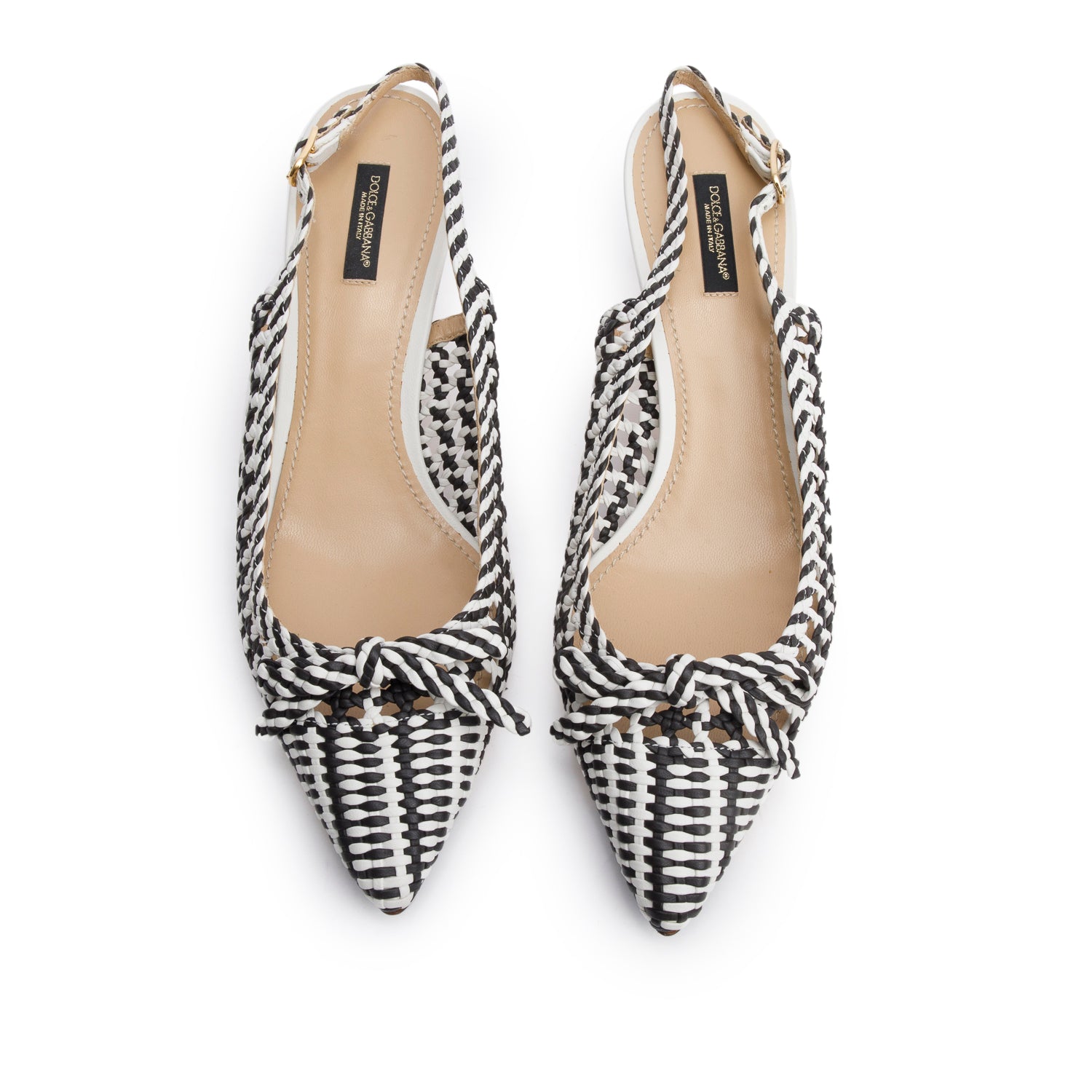 Dolce & Gabbana Black/White woven Leather Bow Slingback Pumps, Size 40